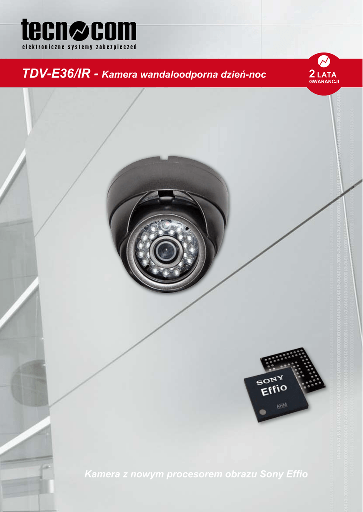 TDV-E36/IR - Kamera wandaloodporna dzień-noc Kamera z nowym procesorem obrazu Sony Effio 2 LATA GWARANCJI Model TDV-E36/IR Przetwornik obrazu 1/3” SONY EX-view HAD CCD II Procesor obrazu Sony Effio DSP Rozdzielczość 700 TVL Czułość 0.001 Lux ATR Rozszerzony zakres dynamiki Ustawienia parametrów OSD Wbudowany promienni LED 24 szt. (850nm) 20 metrów Wbudowany obiektyw 3,6mm Funkcja redukcji szumów 2D -DNR Detekcja ruchu Tak Strefy prywatności Tak Wbudowany układ zapobiegający rozmyciu obrazu Tak Temperatura pracy -300C ~ +600C Wymiary 94mm x 69mm Waga 400g Zasilanie 12V / 350mA Kamera z nowym procesorem obrazu Sony Effio ● 700TVL ● 0.001 Lux ● ATR ● obiektyw: 3,6mm ● 2D -DNR ● Promiennik podczerwieni ● OSD ● Detekcja ruchu ● Strefy prywatności ● 1/3” SONY EX-view HAD CCD II ● Procesor obrazu: Sony Effio DSP W najnowszych modelach kamer zastosowano opracowany przez SONY innowacyjny zestaw przetwornik EX-view HAD CCD II + procesor Effio. Dzięki temu udało się poprawić kluczowe osiągi kamery: - rozdzielczość obrazu powyżej 700 linii TV - wyższa czułość - polepszona reprodukcja barw - redukcja szumów metodami 2D i 3D - mniejszy pobór mocy Dodatkowo wprowadzono wiele nowych funkcji dostępnych z menu OSD: - ATR (adaptive tone reproduction) korekcja odcieni jasnych/ciemnych obszarów - HLC (highlight compensation)tłumienie prześwietleń - zaawansowane sterowanie migawką - detekcja ruchu, strefy prywatności Modele kamer z symbolem E bazują na chipsecie SONY Effio. ul. Gen. Józefa Sowińskiego 68, 70-236 Szczecin tel. +48 091 452-40-51 www.tecnocom.pl e-mail: [email protected]