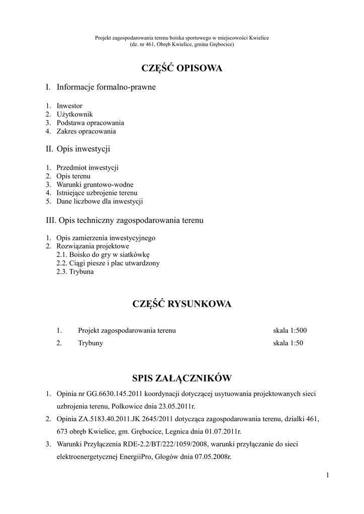CZĘŚĆ OPISOWA CZĘŚĆ RYSUNKOWA SPIS ZAŁĄCZNIKÓW
