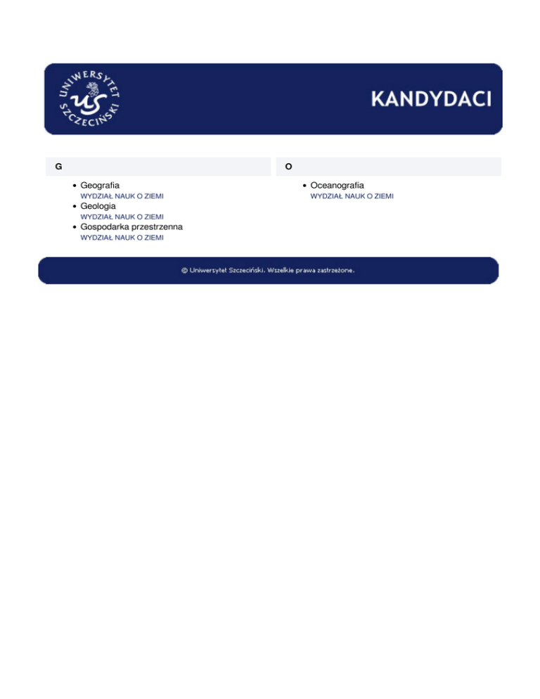 G O Geografia Oceanografia WYDZIAŁ NAUK O ZIEMI WYDZIAŁ NAUK O ZIEMI Geologia WYDZIAŁ NAUK O ZIEMI Gospodarka przestrzenna WYDZIAŁ NAUK O ZIEMI Powered by TCPDF (www.tcpdf.org)