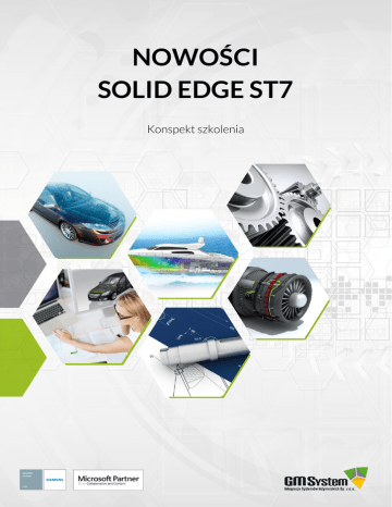 NOWOŚCI SOLID EDGE ST7 Konspekt szkolenia NOWOŚCI SOLID EDGE ST7 Firma GM System Integracja Systemów Inżynierskich Sp. z o.o. została założona w 2001 roku. Zajmujemy się dostarczaniem systemów CAD/CAM/CAE/PDM. Jesteśmy jednym z największych polskich dostawców tego rodzaju rozwiązań i kluczowym partnerem handlowym Siemens Industry Software, reprezentujemy w Polsce firmę Coretech System z Tajwanu oraz posiadamy tytuł Silver Collaboration and Content Microsoft Partner. Zajmujemy się doradztwem przy wyborze oprogramowania, sprzedażą oraz wdrożeniami (m.in. szkoleniami, dostosowaniem oprogramowania do indywidualnych potrzeb użytkownika, doborem sprzętu komputerowego). Nasi specjaliści publikują liczne opracowania z zakresu oprogramowania CAx. Nasza oferta: 2 Solid Edge – najefektywniejszy dostępny obecnie na rynku system CAD klasy mid-range, NX CAD/CAM/CAE – najlepszy system wspomagający projektowanie oraz wytwarzanie zawierający bogaty zestaw nowoczesnych narzędzi inżynierskich, Femap – zaawansowany system do analiz wytrzymałościowych MES, Moldex3D – oprogramowanie do przeprowadzania cyfrowej analizy procesu wtrysku tworzyw sztucznych, Cadenas PARTsolutions – zbiór modeli CAD 3D/2D standardowych części i podzespołów, Teamcenter – zintegrowany zestaw zaawansowanych aplikacji do zarządzania cyklem życia produktu, Solid Edge Insight – bazujący na platformie Microsoft SharePoint, efektywny i łatwy we wdrożeniu system do zarządzania procesem projektowania, Szkolenia CAD/CAM/CAE/PDM, Usługi w zakresie m. in. projektowania 3D, obliczeń wytrzymałościowych, programowania. Więcej informacji: Tel.: (+48) 71 791 30 51 [email protected] www.gmsystem.pl NOWOŚCI SOLID EDGE ST7 Konspekt szkolenia (spis treści) 1. Nowe rozwiązania wspólne dla różnych środowisk ......................................................................................6 1.1. Nowe zasady pracy z szablonami dedykowanymi dla standardów rysunkowych ..............................6 1.2. Unowocześnione metody doboru jednostek w plikach Solid Edge ...................................................8 1.3. Rozbudowane zasady stosowania Tablicy materiałów ...................................................................10 1.4. Unowocześniona funkcjonalność dokonywania pomiarów 3D/2D ...................................................13 1.5. Radykalnie zmodernizowane polecenie Otwór ..............................................................................16 18 1.6. Szkic 3D .................................................................................................................................... 20 1.7. Rendering w środowisku KeyShot ................................................................................................ 29 2. Środowisko Części, Części blaszanej oraz Szkicownika ................................................................................. 2.1. Zamiana modeli części o zróżnicowanych kształtach na cienkościenne modele blach, 29 które następnie można rozwinąć .................................................................................................. 2.2. Tworzenie rozwinięć obiektów "nierozwijalnych", np. przetłoczonych .............................................32 2.3. Rozwój narzędzi do rozpoznawania otworów oraz szyków otworów: rozpoznawanie szyków zawierających w sobie mniejsze szyki ............................................................................ 34 2.4. Rozpoznawanie faz w importowanej geometrii (Technologia Synchroniczna) ..................................36 2.5. Nowe narzędzia do szybkiego tworzenia brył podstawowych: prostopadłościan, walec oraz kula (Technologia Synchroniczna) ..............................................................................37 2.6. Dynamiczne wyświetlanie parametrów obiektów 2D w szkicowniku ...............................................39 2.7. Unowocześnione wyświetlanie punktów charakterystycznych obiektów w szkicowniku ....................40 41 2.8. Rozwiązania do przyspieszenia prac w szkicowniku ....................................................................... 2.9. Możliwość nadawania ustalonej długości dla krzywych 2D oraz 3D ................................................42 46 3. Środowisko Złożenia ................................................................................................................................. 3.1. Inteligentne powielanie części/podzespołów względem wybranych komponentów 46 odniesienia, już istniejących w złożeniu w różnych lokalizacjach ..................................................... 47 3.2. Szyk wzdłuż krzywej w złożeniu .................................................................................................. 3.3. Nowe opcje przyspieszające pracę z relacjami montażowymi w zespole .........................................51 53 3.4. Unowocześnione rozwiązania dla modelowania ram ...................................................................... 3.5. Wykorzystania krzywych o stałej długości jako ścieżek np. dla przewodów 59 elastycznych (środowisko XpresRoute) ........................................................................................ 3.6. Zapisywanie ustawień dla właściwości rur oraz obróbki ich zakończeń ...........................................62 3.7. Nowe rozwiązania przeznaczone do zwiększenia wydajności pracy z dużymi złożeniami ..................67 3.8. Rozbudowane możliwości wykorzystania otaczającej geometrii podczas pracy w kontekście złożenia ................................................................................................................74 86 3.9. Przyspieszenie korzystania z Biblioteki części ................................................................................ 3.10. Czytelniejszy podgląd komponentów przedstawianych w Bibliotece części .............