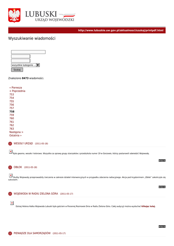 Wyszukiwanie wiadomości - Lubuski Urząd Wojewódzki w Gorzowie