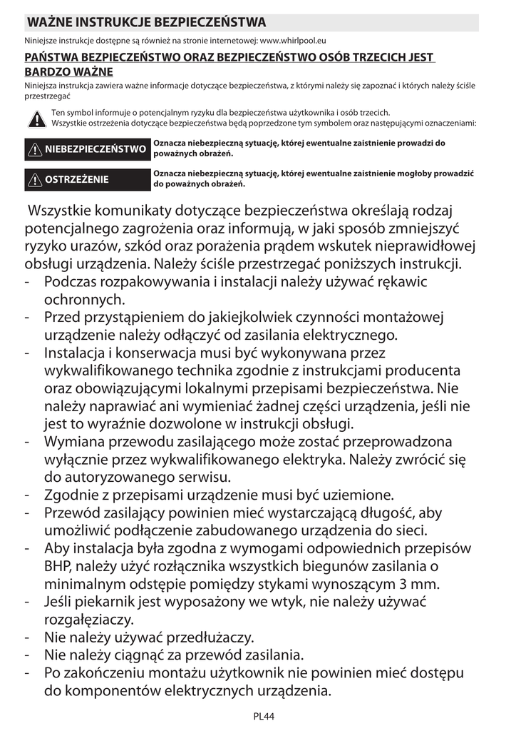 Niniejsze instrukcje dostępne są również na stronie internetowej: www.whirlpool.eu