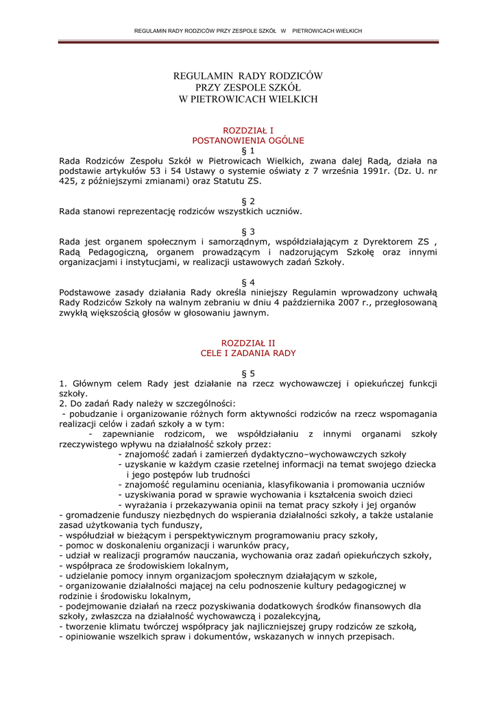 Regulamin rady rodziców - Zespół Szkół w Pietrowicach Wielkich