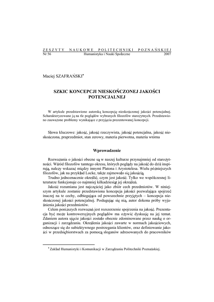 inaczej na te cechy, odbiegaj ca od powszechnie przyj tych koncepcja niesko czonej jako ci potencjalnej. Pos uguj c si ni , autor dokona próby wyjanienia jako ci przedmiotów.