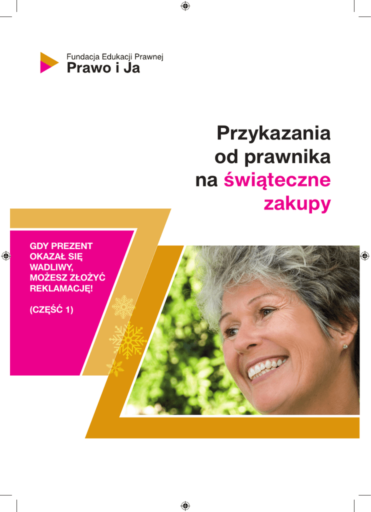 Przykazania od prawnika na świąteczne zakupy GDY PREZENT OKAZAŁ SIĘ WADLIWY, MOŻESZ ZŁOŻYĆ REKLAMACJĘ! (CZĘŚĆ 1) Żelazko jest piękne, ale płyta grzewcza się nie nagrzewa. Jak nim prasować? 1. Gdy kupiona rzecz ma wadę, konsument może złożyć reklamację. Podstawą żądania może być rękojmia lub gwarancja. 2. Udzielenie gwarancji następuje przez złożenie oświadczenia gwarancyjnego. 3. W gwarancji gwarant określa jej warunki, w szczególności czas trwania gwarancji oraz uprawnienia konsumenta w przypadku, gdy rzecz sprzedana ma wady. Jeśli nie określono innego terminu w oświadczeniu gwarancji, gwarancja wynosi 2 lata od dnia wydania rzeczy konsumentowi 4. Konsument może wykonywać uprawnienie z tytułu rękojmi niezależnie od uprawnień wynikających z tytułu gwarancji. Jeśli zakupiony towar posiada gwarancję, konsument może dowolnie wybrać, czy korzystać z rękojmi czy z gwarancji, jak też np. gdy gwarant nie uwzględnił reklamacji, składać reklamację z tytułu rękojmi. 5. Czas trwania rękojmi to dwa lata. Zatem sprzedawca odpowiada z tytułu rękojmi, jeżeli wada fizyczna zostanie stwierdzona przed upływem dwóch od dnia wydania rzeczy kupującemu. Jeżeli konsument nabywa rzecz używaną, odpowiedzialność sprzedawcy może zostać ograniczona nie mniej niż do roku od dnia wydania rzeczy kupującemu. 6. Przez rok od daty zakupu rzeczy istnieje domniemanie, że stwierdzona wada lub jej przyczyna istniała już w momencie sprzedaży. To ułatwia złożenie reklamacji, gdyż to sprzedawca musi udowodnić, że wada powstała z winy konsumenta. Źródła prawa: Ustawa z dnia 23 kwietnia 1964 r. Kodeks cywilny (Dz. U. 2016 poz. 380 t. j. ze zm.) Ustawa z dnia 30 maja 2014 r. o prawach konsumenta (Dz.U.2014 poz.827 ze zm.) 7. Jeżeli żądanie złożone przez konsumenta przy reklamacji dotyczy naprawy towaru, wymiany towaru na nowy lub obniżenia ceny towaru, na sprzedawcy spoczywa obowiązek rozpatrzenia reklamacji w terminie 14 dni kalendarzowych od dnia jej złożenia. W przypadku niedotrzymania tego terminu uznaje się, że reklamacja jest zasadna. Rękojmia Ustawowa odpowiedzialność sprzedawcy wobec kupującego za wadę fizyczna lub prawną rzeczy Gwarancja Dobrowolne zobowiązanie gwaranta (sprzedawcy, producenta lub importera) odnośnie jakości produktu. 1. c r z Zapraszamy również do lektury bloga i skorzystania z bezpłatnych porad prawnych za pośrednictwem strony fundacji: www.fundacjaedukacjiprawnej.pl Publikacja powstała w ramach zadania „Bezpłatna Świąteczna Pomoc Prawna dla Konsumentów w okresie od 1 do 30 grudnia 2016 r.” dzięki finansowaniu ze środków Urzędu Ochrony Konkurencji i Konsumentów. Warszawa 2016