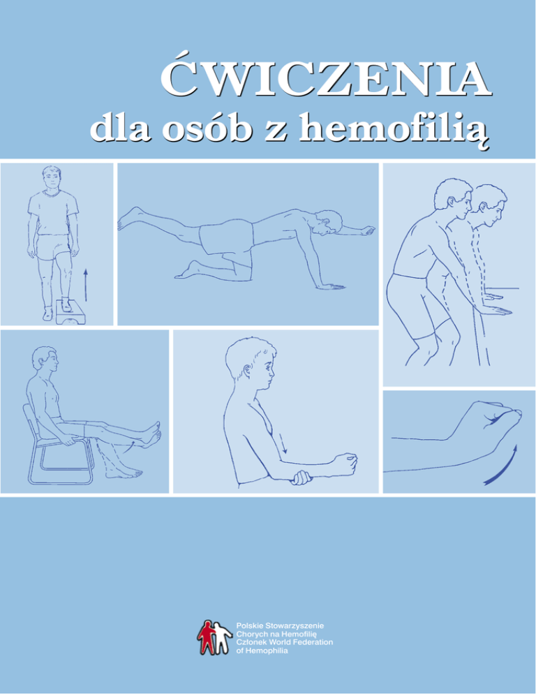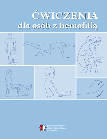 Ćwiczenia dla osób z hemofilią Polskie Stowarzyszenie Chorych na Hemofilię Członek World Federation of Hemophilia Ćwiczenia dla osób z hemofilią Ćwiczenia dla osób z hemofilią Tytuł oryginału: Exercises for People with Hemophilia This publication was originally published by the World Federation of Hemophilia (WFH) and has been reprinted with permission. © 2006 World Federation of Hemophilia Publikacja wydana przez Światową Federację Hemofilii © Światowa Federacja Hemofilii, 2006 Ilustracje © VHI, 1999 1425 Rene Levesque Boulevard West, Suite 1010 Montreal, Quebec H3G 1 T7 Tel. (514) 875-7944 Faks: (514) 875-8916 E-mail: [email protected] Strona internetowa: www.wfh.org Tłumaczenie: Magdalena Parol Redakcja: Bogdan Gajewski, Andrzej Janus, Katarzyna Jokiel, Radosław Kaczmarek, Bernadetta Pieczyńska, Katarzyna Pinkosz, Adam Sumera Konsultacja medyczna: lek. med. Zdzisław Grzelak, Regionalne Centrum Krwiodawstwa i Krwiolecznictwa we Wrocławiu, mgr Izabela Jaszczur, fizjoterapeuta, Katedra Fizjoterapii i Terapii Zajęciowej w Dysfunkcjach Narządu Ruchu, Akademia Wychowania Fizycznego we Wrocławiu, mgr Karol Scipio del Campo, specjalista rehabilitacji II stopnia, Samodzielny Publiczny Dziecięcy Szpital Kliniczny Warszawskiego Uniwersytetu Medycznego Grafik: Anna Kołacz Podziękowania Książka „Ćwiczenia dla osób z hemofilią”, autorstwa Kathy Mulder, powstała we współpracy z wolontariuszami Światowej Federacji Hemofilii z całego świata. Ogromne podziękowania składamy recenzentom: doktor Lily Heijnen, fizjoterapeutom: Davidowi Stephensenowi, Pameli Narayan, Karen Beeton, Nichanowi Zourikianowi, Greigowi Blameyowi oraz wiceprzewodniczącemu ds. komunikacji Światowej Federacji Hemofilii Davidowi Page’owi. Światowa Federacja Hemofilii pragnie także podziękować autorowi ilustracji, Timowi Fedakowi, którego rysunki i wykresy uzupełniają te wykorzystane za zgodą VHI (Visual Health Information). Polskie Stowarzyszenie Chorych na Hemofilię www.hemofilia.org.pl ISBN 978-83-911231-5-7 WYDANIE PIERWSZE Warszawa 2013 Polskie Stowarzyszenie Chorych na Hemofilię Członek World Federation of Hemophilia Spis treści Wstęp..................................................................................................................................................................................................... 7 Wstęp do wydania polskiego ...................................................................................................................................... 10 Część 1: Uszkodzenia stawów i mięśni w przebiegu hemofilii .......................................................... 11 Część 2: Kilka słów o ćwiczeniach i hemofilii ................................................................................................. 17 Część 3: Propozycje ćwiczeń poprawiających funkcję stawów ...................................................... 19 Ćwiczenia usprawniające staw kolanowy ......................................................................................... 20 Ćwiczenia usprawniające staw skokowy ........................................................................................... 25 Ćwiczenia usprawniające staw łokciowy ........................................................................................... 28 Część 4: Ćwiczenia przywracające sprawność mięśni .......................................................................... 33 Ćwiczenia przywracające sprawność mięśnia biodrowo-lędźwiowgo ........................ 34 Ćwiczenia wzmacniające mięsień brzuchaty łydki .................................................................... 39 Ćwiczenia na grupę mięśni kulszowo-goleniowych .................................................................. 41 Ćwiczenia na grupę mięśni zginaczy przedramienia ............................................................. 44 Ćwiczenia wzmacniające mięsień czworogłowy uda ............................................................... 46 Podsumowanie ....................................................................................................................................................................... 51 Słowniczek ................................................................................................................................................................................. 52 Bibliografia ............................................................................................................................................................................... 54 Wstęp Pytania wydają się proste: „Jestem chory na hemofilię, jakie ćwiczenia powinienem wykonywać?”, „Jakie ćwiczenia powinienem zalecać moim pacjentom chorym na hemofilię?”. Odpowiedź jest równie prosta: „Wszystko zależy”. Nie ma czegoś takiego jak „ćwiczenia dla osób z hemofilią”. Różne ćwiczenia służą różnym celom i należy je dobierać indywidualnie. Podobnie jak leki, ćwiczenia fizyczne działają najlepiej wtedy, gdy odpowiednio przeszkolony specjalista dokona całościowej oceny stanu pacjenta i dobierze odpowiednie ćwiczenia dopasowane do indywidualnych potrzeb i możliwości danej osoby. Niniejszy przewodnik jest przeznaczony dla: l fizjoterapeutów, którzy mają małe doświadczenie w pracy z osobami ze skazami krwotocznymi, l innych pracowników służby zdrowia prowadzących zajęcia rehabilitacyjne, gdy w danym ośrodku nie ma fizjoterapeuty, l osób chorych na hemofilię i ich rodzin. Książka składa się z kilku części, w których omawiane są konsekwencje wylewów do stawów i mięśni, zmiany w układzie kostno-mięśniowym oraz ćwiczenia poprawiające stan stawów i mięśni. Część 1: Uszkodzenia stawów i mięśni w przebiegu hemofilii. W tej części znajduje się opis najczęściej występujących krwawień do mięśni i stawów. Omawiamy też reakcje po
