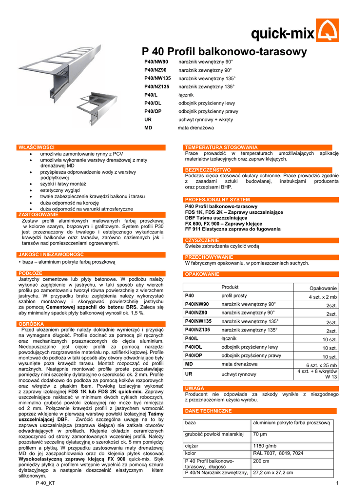 Karta techniczna - quick-mix