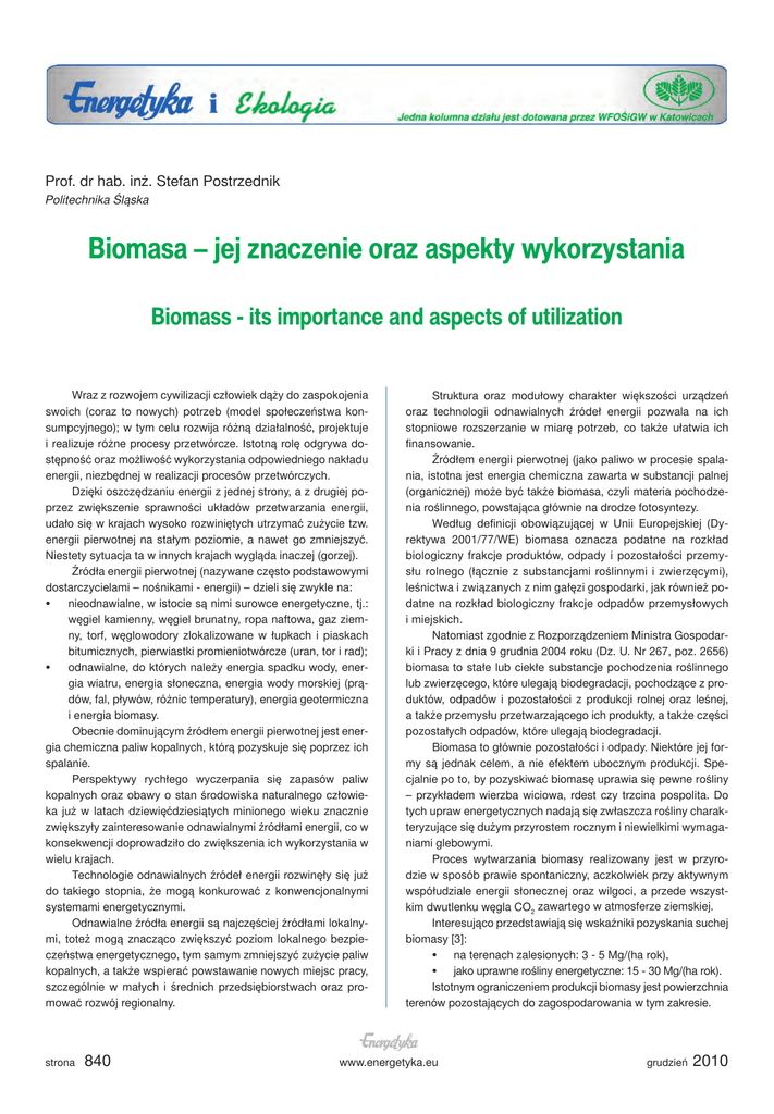 Biomasa - jej znaczenie oraz aspekty wykorzystania (pobierz)