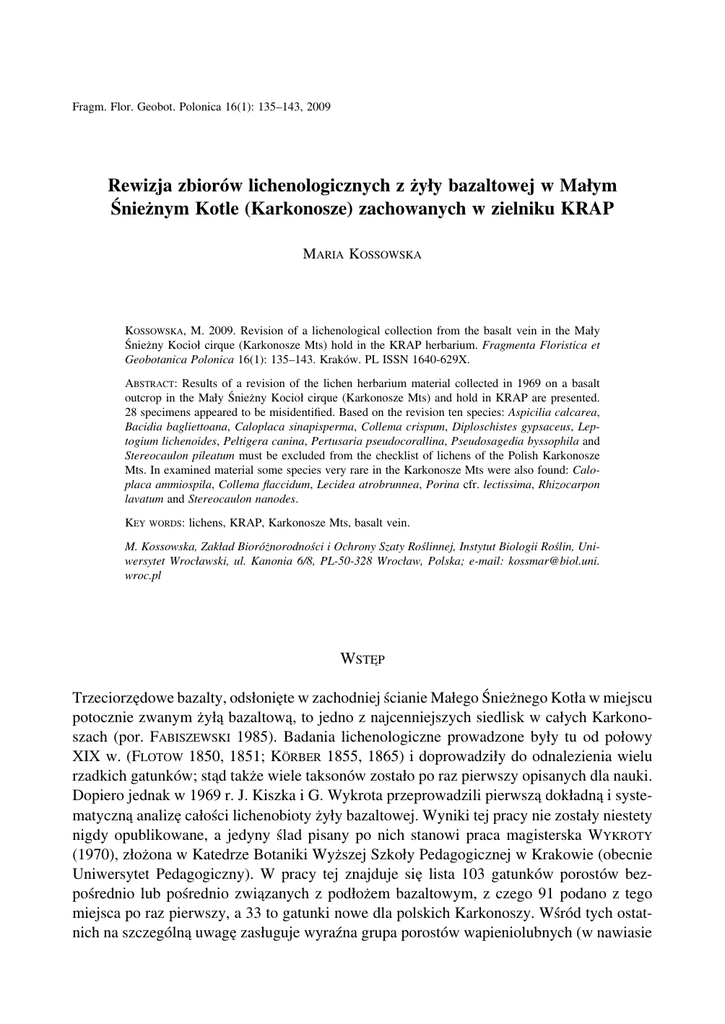 Rewizja zbiorów lichenologicznych z żyły bazaltowej w Małym
