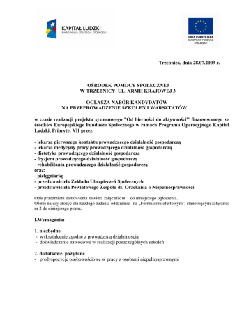 Trzebnica, dnia 28.07.2009 r. OĝRODEK POMOCY SPOŕECZNEJ W