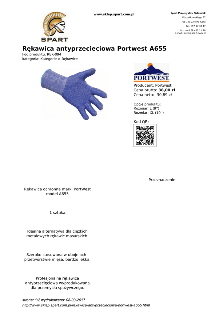 Spart Przemysław Szlendak www.sklep.spart.com.pl Wyczółkowskiego 57 65-140 Zielona Góra tel. 697 17 33 17 fax. +48 68 422 11 78 e-mail: [email protected] Rękawica antyprzecieciowa Portwest A655 kod produktu: REK-094 kategoria: Kategorie > Rękawice Producent: Portwest Cena brutto: 38,00 zł Cena netto: 30,89 zł Opcje produktu: Rozmiar: L (9'') Rozmiar: XL (10'') Kod QR: Przeznaczenie: Rękawica ochronna marki PortWest model A655 1 sztuka. Idealna alternatywa dla ciężkich metalowych rękawic masarskich. Szeroko stosowana w ubojniach i przetwórstwie mięsa, bardzo lekka. Profesjonalna rękawica antyprzecięciowa wyprodukowana dla przemysłu spożywczego. strona: 1/2 wydrukowano: 08-03-2017 http://www.sklep.spart.com.pl/rekawica-antyprzecieciowa-portwest-a655.html Skład materiału: Posiada odporność na przecięcie na poziomie 5 (wyższego nie ma, :) najwyższe wg normy EN388) Normy i oznaczenia Kat.1, EN420 Posiada długi mankiet chroniący również nadgarstek. Można prać w temperaturze 60st. 2.5.4.X Rękawica pasuje na prawą lub lewa rękę (sprzedawana na sztuki). Dobierz szybko swój rozmiar: Jaki masz obwód dłoni ? rozmiar: L ( 9'' ) 22,9 cm obwód dłoni strona: 2/2 wydrukowano: 08-03-2017 http://www.sklep.spart.com.pl/rekawica-antyprzecieciowa-portwest-a655.html XL ( 10'' ) 25,4 cm