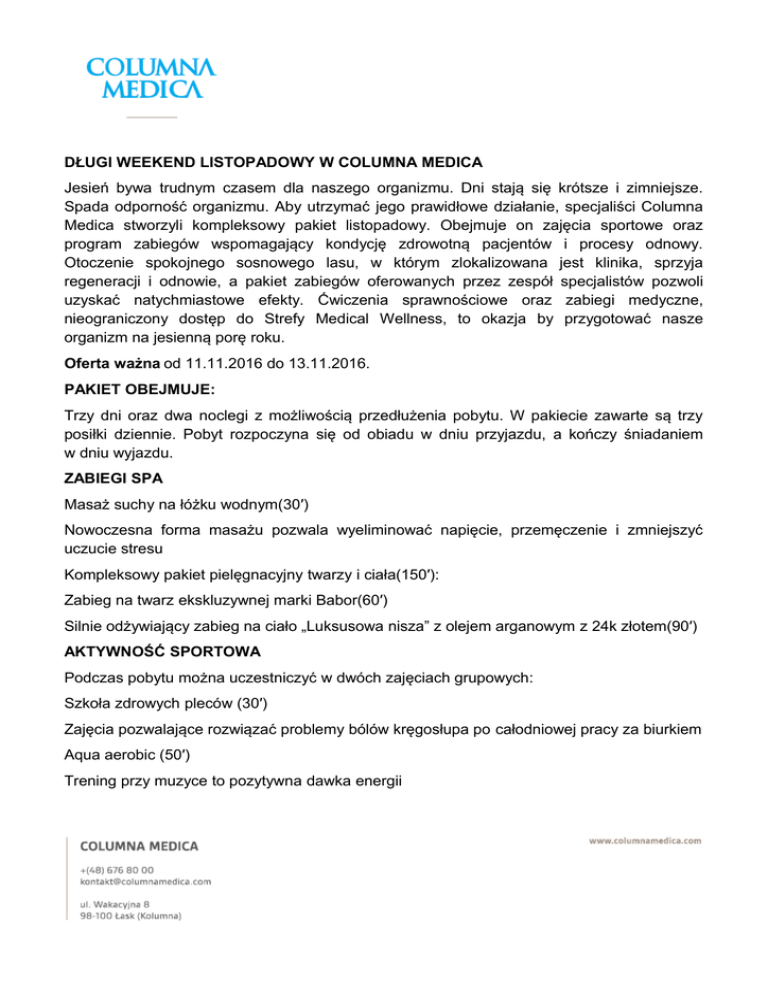 DŁUGI WEEKEND LISTOPADOWY W COLUMNA MEDICA Jesień