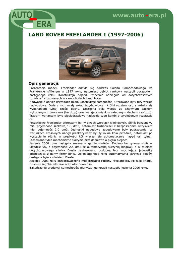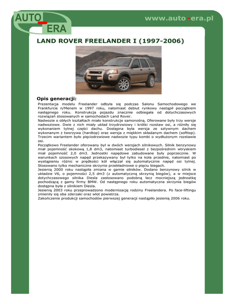 Opis rodziny: LAND ROVER FREELANDER I. - AUTO-ERA