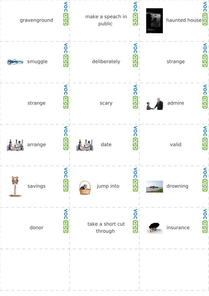 gravenground make a speach in public smuggle deliberately strange strange scary admire arrange date valid savings donor jump into take a short cut through haunted house drowning insurance Powered by TCPDF (www.tcpdf.org) nawiedzony dom wyglosic przemowienie cmentarz dziwny celowo przemycać podziwiać straszny dziwny ważny (np. o paszporcie) randka zorganizować tonac wskoczyć oszczędności ubezpieczenie isc na skroty dawca