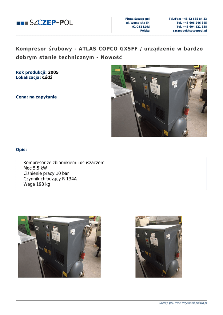 Kompresor śrubowy - ATLAS COPCO GX5FF - Szczep-pol