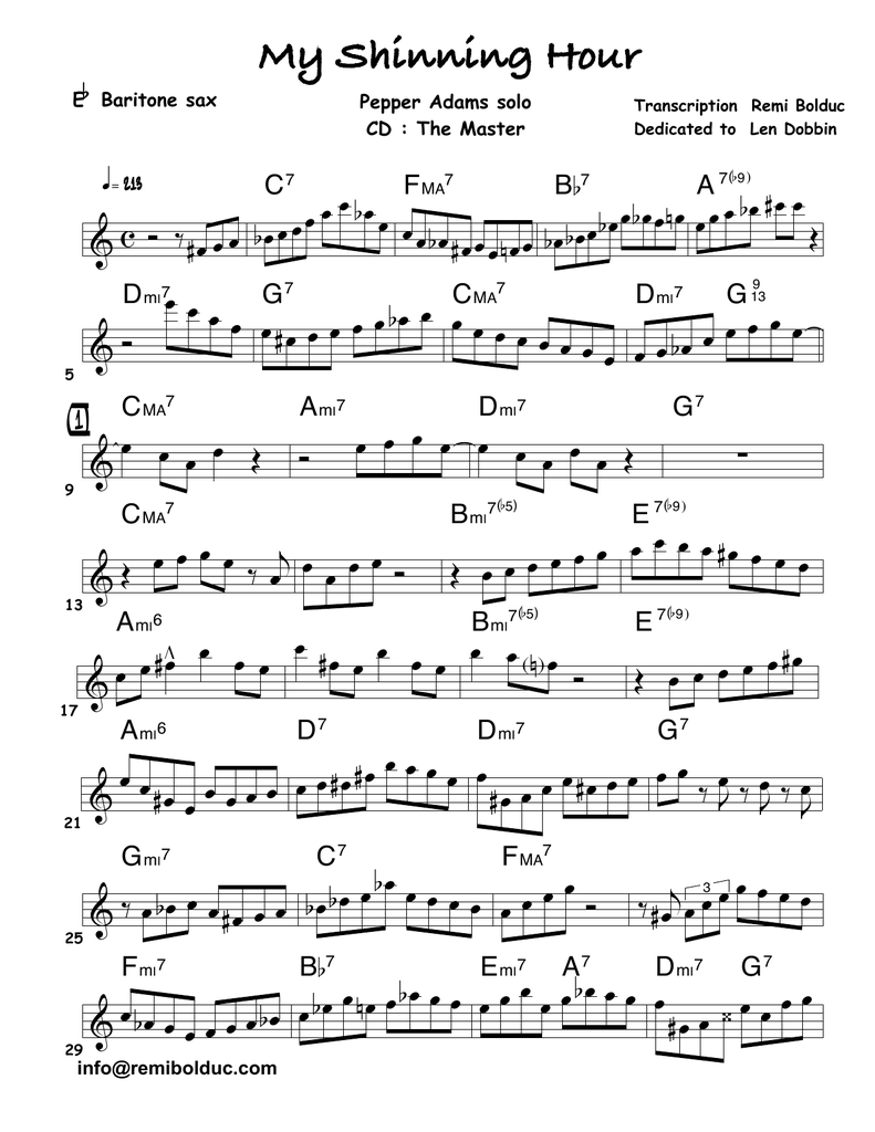 Pepper Adams solo - My Shinning Hour
