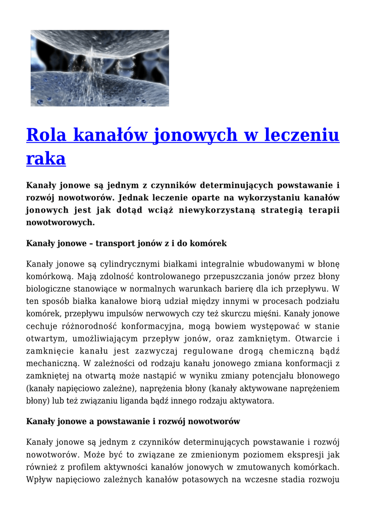 Rola kanałów jonowych w leczeniu raka