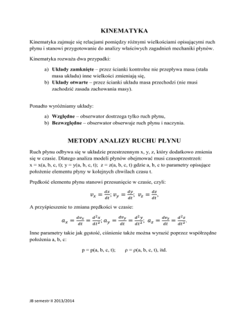 KINEMATYKA METODY ANALIZY RUCHU PŁYNU