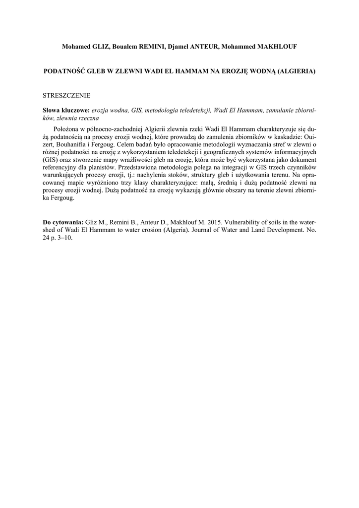 Mohamed GLIZ, Boualem REMINI, Djamel ANTEUR, Mohammed