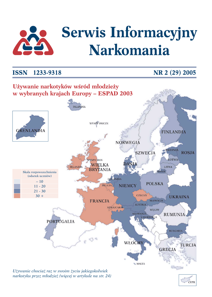 Serwis Informacyjny Narkomania ISSN 1233-9318 U˝ywanie narkotyków wÊród m∏odzie˝y w wybranych krajach Europy – ESPAD 2003 Skala rozpowszechnienia (odsetek uczniów) – 10 11 - 20 21 - 30 30 + U˝ywanie chocia˝ raz w swoim ˝yciu jakiegokolwiek narkotyku przez m∏odzie˝ (wi´cej w artykule na str. 24) NR 2 (29) 2005 2 SPIS TREÂCI U˚YWANIE NARKOTYKÓW I ICH DOST¢PNOÂå WÂRÓD STUDENTÓW Wyniki badania ankietowego – 2004 Janusz Sieros∏awski BADANIA SZKOLNE NA TEMAT U˚YWANIA SUBSTANCJI PSYCHOAKTYWNYCH PRZEZ M¸ODZIE˚ (ESPAD) Polska m∏odzie˝ na tle Europy w 2003 r Janusz Sieros∏awski str. 3 str. 24 PROCES TWORZENIA STANDARDÓW W TERAPII UZALE˚NIE¡ Dawid Chojecki str. 39 REKOMENDACJE do opracowania regulaminu porzàdkowego w zak∏adzie opieki zdrowotnej prowadzàcym terapi´ osób uzale˝nionych od narkotyków str. 43 JAK ROZPOWSZECHNIAå INFORMACJE O ZJAWISKU NARKOMANII– relacje z mediami Agnieszka Marchel str. 51 CENTRUM INFORMACJI O NAKOTYKACH I NARKOMANII Rola ekspertów wojewódzkich w budowaniu systemu zbierania danych Artur Malczewski str. 55 SYSTEM SZKOLE¡ W DZIEDZINIE TERAPII I REHABILITACJI UZALE˚NIENIA OD NARKOTYKÓW CERTYFIKOWANY PRZEZ MINISTRA ZDROWIA str. 58 OG¸OSZENIE w sprawie konkursu na uzyskanie rekomendacji Krajowego Biura do Spraw Przeciwdzia∏ania Narkomanii uprawniajàcej do prowadzenia sta˝y klinicznych w ramach programu specjalistycznego szkolenia w dziedzinie terapii i rehabilitacji uzale˝nienia od narkotyków zatwierdzanego i certyfikowanego przez ministra zdrowia str. 59 3 U˚YWANIE NARKOTYKÓW I ICH DOST¢PNOÂå WÂRÓD STUDENTÓW Wyniki badania ankietowego – 2004 Wprowadzenie Od poczàtku lat dziewi´çdziesiàtych obserwujemy w naszym kraju szybki wzrost rozpowszechnienia wÊród m∏odzie˝y u˝ywania narkotyków. Przekonujà o tym nie tylko potoczne obserwacje, ale tak˝e wyniki powtarzanych co kilka lat badaƒ ankietowych obejmujàcych reprezentatywne dla ca∏ego kraju próby m∏odzie˝y szkolnej. Zarówno wyniki badaƒ ESPAD zrealizowanych przez Instytut Psychiatrii i Neurologii w latach 1995, 1999 i 2003, jak i wyniki badaƒ szkolnych prowadzonych przez CBOS w latach 1992, 1994, 1996, 1999 i 2003 wykazujà trend wzrostowy rozpowszechnienia u˝ywania narkotyków przez m∏odzie˝ szkolnà. Wyniki pierwszego ogólnopolskiego badania ankietowego na próbie mieszkaƒców naszego kraju w wieku 16 lat i starszych przeprowadzane przez Centrum Informacji o Narkotykach i Narkomanii Krajowego Biura ds. Przeciwdzia∏ania Narkomanii w 2002 r. pokaza∏y, ˝e zjawisko wzrostu u˝ywania narkotyków nie ogranicza si´ do m∏odzie˝y szkolnej, ale obecne jest tak˝e w starszych grupach m∏odzie˝y oraz wÊród m∏odych doros∏ych. W badanej podówczas próbie mieszkaƒców naszego kraju znalaz∏o si´ 325 studentów. JeÊli analizowaç tylko osoby w wieku 19-26 lat, to rozpowszechnienie u˝ywania narkotyków w grupie studentów okaza∏o si´ najwy˝sze. By∏o ono znacznie wy˝sze ni˝ wÊród osób z tej kategorii wiekowej ju˝ pracujàcych i nieco wy˝sze ni˝ wÊród ich bezrobotnych rówieÊników. Konstatacja ta sk∏ania∏a do dok∏adniejszego przyjrzenia si´ kwestii u˝ywania narkotyków przez studentów i do podj´cia w tym celu badania na odpowiednio licznej ich reprezentacji. Zainteresowania poznawcze kwestià u˝ywania narkotyków przez studentów zbieg∏y si´ z potrzebami praktycznymi. Akcja „Uczelnie wolne od narkotyków“ zainicjowana przez sekretarza stanu w Kancelarii Prezydenta RP Barbar´ Labud´ i prowadzona pod jej patronatem wymaga∏a oszacowaƒ rozmiarów problemu narkotyków wÊród studentów. Badania mog∏y takich oszacowaƒ dostarczyç. Ich powtórzenie po jakimÊ czasie pozwoli tak˝e na dokonanie ewaluacji efektów dzia∏aƒ profilaktycznych na uczelniach. Badanie podj´te w 2004 r. by∏o wspólnym przedsi´wzi´ciem trzech instytucji: Centrum Informacji o Narkotykach i Narkomanii Krajowego Biura ds. Przeciwdzia∏ania Narkomanii, Pracowni Badaƒ Spo∏ecznych oraz Agencji Promocji Studentów Socjologii „PAPSS“. Agencja przygotowa∏a wst´pnà wersj´ kwestionariusza, dopracowanà nast´pnie przez Centrum Informacji o Narkotykach i Narkomanii we wspó∏pracy z Pracownià Badaƒ Spo∏ecznych. Dobór próby, terenowa cz´Êç badania oraz za∏o˝enie i kontrola zbioru danych zrealizowane zosta∏y przez Pracowni´ Badaƒ Spo∏ecznych. Analiza wyników i opracowanie raportu nale˝a∏y do Centrum Informacji o Narkotykach i Narkomanii. Ca∏oÊç projektu zosta∏a sfinansowana przez Krajowe Biuro ds. Przeciwdzia∏ania Narkomanii ze Êrodków bud˝etowych ministra zdrowia wydzielonych na badania oraz Êrodków pochodzàcych z funduszy europejskich (Europejskie Centrum Monitorowania Narkotyków i Narkomanii – EMCDDA). Badanie mia∏o na celu przede wszystkim pomiar nat´˝enia zjawiska u˝ywania przez studentów substancji psychoaktywnych. Podstawowymi pytaniami badawczymi by∏y zatem pytania o liczby studentów, którzy mieli doÊwiadczenia z tego typu substancjami, oraz o stopieƒ nasilenia tych doÊwiadczeƒ. Celem badania by∏a równie˝ próba 4 identyfikacji i pomiaru czynników wp∏ywajàcych na rozmiary zjawiska, zarówno po stronie popytu, jak i poda˝y. W badaniu poruszono zatem takie kwestie, jak dost´pnoÊç substancji psychoaktywnych, przekonania na temat ich szkodliwoÊci, doÊwiadczenia w zakresie problemów zwiàzanych z ich u˝ywaniem. Wszystkie te kwestie zosta∏y poddane pomiarowi iloÊciowemu w celu dokonania oszacowaƒ wÊród m∏odzie˝y studiujàcej w ca∏ym kraju. Intencjà tych oszacowaƒ by∏o dostarczenie wiedzy u˝ytecznej przy planowaniu dzia∏aƒ profilaktycznych w Êrodowisku studenckim. Przedmiotem tego artyku∏u sà jedynie wyniki odnoszàce si´ do u˝ywania narkotyków oraz kwestii ich dost´pnoÊci. Inne zagadnienia poddane badaniu zaprezentowane zostanà w nast´pnym artykule na ∏amach Serwisu. Metoda i próba badawcza Badanie z