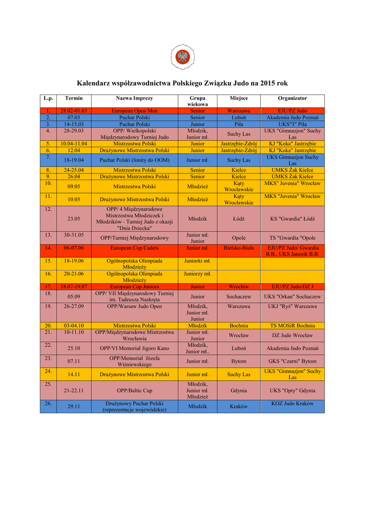 Kalendarz współzawodnictwa Polskiego Związku Judo na 2015 rok