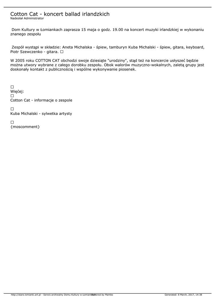 http://stare.lomianki.art.pl - Serwis archiwalny Domu Kultury w Łomiankach