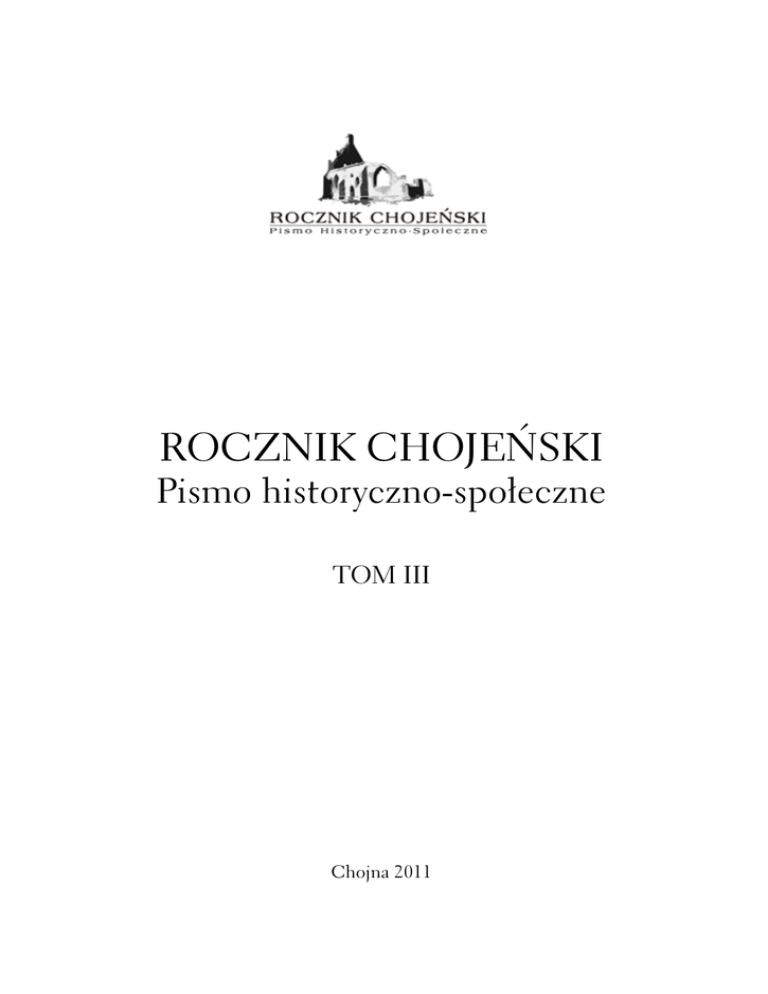 ROCZNIK CHOJEŃSKI Pismo historyczno-społeczne TOM III Chojna 2011 1 KOMITET REDAKCYJNY: Marek Bednarz, Dorota Dobak-Hadrzyńska, Saba Keller, Przemek Lewandowski, Paweł Migdalski (sekretarz redakcji), Robert Ryss, Radosław Skrycki (redaktor naczelny) KONTAKT Z REDAKCJĄ: www.rocznikchojenski.pl [email protected] Tłumaczenia na jęz. niemiecki: Saba Keller Na okładce fotografie Artura Żurawskiego (1998) DRUK I SKŁAD: Drukarnia KaDruk Szczecin WYDAWCA: Stowarzyszenie Historyczno-Kulturalne „Terra Incognita” w Chojnie ul. Żółkiewskiego 20, 74-500 Chojna Nakład: 300 egzemplarzy ISSN: 2080-9565 2 SPIS TREŚCI Słowo od redakcji.....................................................................................................7 Artykuły Antoni Porzeziński Nowe stanowiska archeologiczne w Cedyni, Osinowie Dolnym i Steklnie.................................................................................... 11 Edward Rymar Rola i znaczenie miasta Königsberg / Chojna w średniowiecznych 21 dziejach Nowej Marchii........................................................................................... Edward Rymar Podchojeńska rodzina rycerska von Sack (Saccus, Sak, Secken) w średniowieczu....................................................................................................... 49 Kinga Krasnodębska Zespół malowideł gotyckich kościoła parafialnego w Czachowie.......................... 61 Grzegorz Graliński 71 Średniowieczne mury obronne Chojny................................................................... Małgorzata Dąbrowska Nowa Ameryka nad Wartą. Kolonizacja Łęgu Krzeszyckiego w okresie fryderycjańskim (II połowa XVIII wieku)................................................................ 91 Andrzej Talarczyk Literatura piękna Ziemi Chojeńskiej na obszarze (dawnej) Nowej 105 Marchii – projekt badawczy dla polskich germanistów? Uwagi wstępne............... 3 Robert Michalak Strategiczna zapasowa przeprawa kolejowa na Odrze koło Siekierek.................... 121 Emilia Szczygieł-Lembicz Jednostka wojskowa w Chojnie na tle przeobrażeń w strukturze 149 organizacyjnej Pomorskiej Brygady WOP w latach 1960–1980........................... Marek Schiller 165 Długogóry.................................................................................................................. Teresa Łopuska Projekt adaptacji wnętrza kościoła Mariackiego w Chojnie 179 na cele muzealne...................................................................................................... Lech Łukasiuk Zbiór archiwaliów po Burkhardzie Regenbergu i Reimundzie Franzu w zasobach działu regionalnego Biblioteki Publicznej Miasta i Gminy w Dębnie........................................................................................ 189 WYWIADY, WSPOMNIENIA Andrzej Kordylasiński, Bożena Mertens Gdy nadszedł front. Rozmowa z Martą Marią Schulz, dawną mieszkanką Grzybna..................................................................................... 217 Hubert Simiński Grudzień ’70 w Szczecinie. Historia jednej śmierci............................................... 223 Tomasz Zgoda „Walczyłem pod Schwedt”. Wspominają weterani Kampfgruppe Schwedt....................................................... 227 Maria Jarosz-Kujawiak Może ich pan powiesić… . ...................................................................................... 243 4 Małgorzata Mikołajczyk Siostra znajdzie Cię wszędzie............................................................................247 MOJE KORZENIE. HISTORIA MOJEJ RODZINY A HISTORIA REGIONU 253 Emil Chróściak Bo nikt nie wiedział, że tu jest Polska................................................................ 254 Paulina Olechnowska Mała ojczyzna mojej babci................................................................................. 261 Anna Tomczyk Szukaliśmy pracy, a znaleźliśmy siebie.............................................................. 264 Łukasz Pawłowski I otrze Bóg z ich oczu wszelką łzę...................................................................... 267 MISCELLANEA Edward Rymar Zaginione miejscowości ziemi chojeńskiej i mieszkowickiej. Cz. 2. „Krzymowo”, „Brewce”, „Sarbiewo”....................................................... 271 Paweł Migdalski Pieśń o śmierci księcia szczecińskiego Kazimierza III pod murami Chojny (1372)............................................................................... 277 Ewa Gwiazdowska Friedrich Augusta Stülera rysunki architektoniczne z Chojny – owoc podróży studyjnej z 1831 roku.............................................................. 283 5 Urszula Markiewicz Źródła archiwalne dotyczące Chojny do 1945 roku w zasobie Archiwum Państwowego w Szczecinie.............................................................. 295 Magdalena Dźwigał Dokumenty organów bezpieczeństwa byłego powiatu chojeńskiego w zasobie Instytutu Pamięci Narodowej w Szczecinie..................................... 299 SPRAWOZDANIA, RECENZJE Jerzy Ostrowski Chojeńskie spotkanie historyków kartografii.................................................... 305 Robert Ryss Obozy pełne krwi i białych plam....................................................................... 309 Paweł Migdalski Sprawozdanie z działalności Stowarzyszenia Historyczno-Kulturalnego „Terra Incognita” (IV kwartał 2010 r. i I półrocze 2011 r.)................................ 325 TERRA ARTIFICUM Jerzy Grodek....................................................................................................... 333 Anastazja Lepak................................................................................................. 338 Artur Żurawski................................................................................................... 341 DoDoHa......................................................................