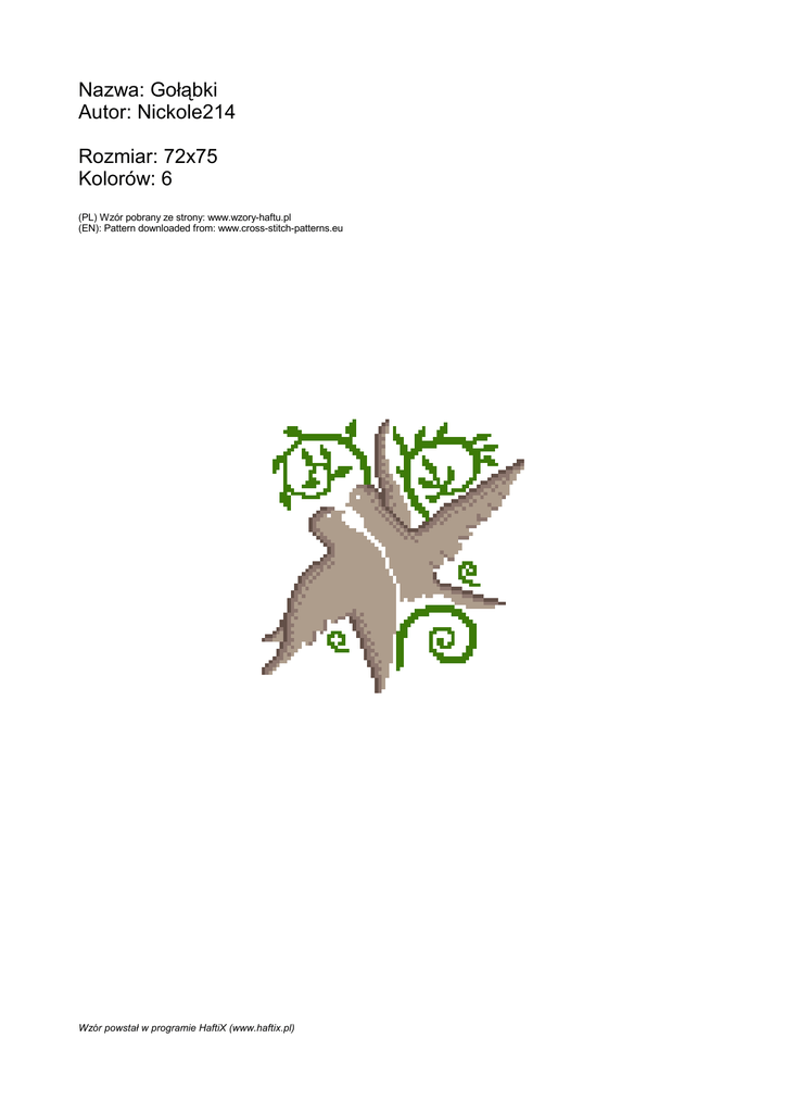 Nazwa: Gołąbki Autor: Nickole214 Rozmiar: 72x75 Kolorów: 6