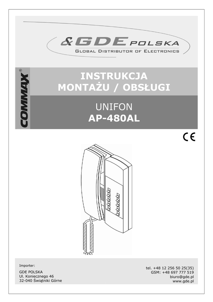 INSTRUKCJA MONTAśU / OBSŁUGI UNIFON AP-480AL