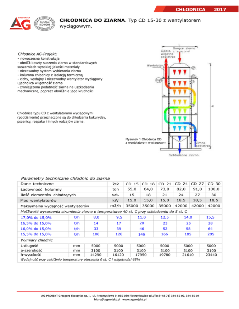 CHŁODNICA 2017 CHŁODNICA DO ZIARNA. Typ CD - AG
