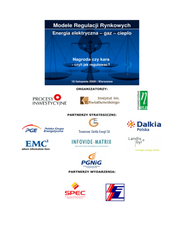 Modele Regulacji Rynkowych Energia elektryczna – gaz – cieplo Nagroda czy kara - czyli jak regulowac? 18 listopada 2008 | Warszawa ORGANIZATORZY: PARTNERZY STRATEGICZNI: PARTNERZY WYDARZENIA: 18 listopada 2008 r. w Centrum Prasowym Polskiej Agencji Prasowej, przy ul. Brackiej 6/8, w Warszawie odbyła się debata „Nagroda czy kara, czyli jak regulować? Modele Regulacji Rynkowych. Energia elektryczna - gaz - ciepło”, zorganizowana przez firmę Procesy Inwestycyjne Sp. z o.o., Stowarzyszenie Eta i Instytut im. E. Kwiatkowskiego. Partnerami strategicznymi debaty „Nagroda czy kara, czyli jak regulować? Modele Regulacji Rynkowych. Energia elektryczna - gaz - ciepło” były firmy: Polskie Górnictwo Naftowe i Gazownictwo S.A., PGE Polska Grupa Energetyczna S.A., Towarowa Giełda Energii S.A., Infovide-Matrix S.A., Dalkia Polska S.A., Landis+Gyr Sp. z o.o., EMC Computer Systems Poland Sp. z o.o.. Partnerami wydarzenia były firmy – Elektrociepłownia Zabrze S.A., SPEC – Stołeczne Przedsiębiorstwo Energetyki Cieplnej S.A.. Głos w dyskusji zabrali (w kolejności wystąpień): • prof. Krzysztof Żmijewski – Przewodniczący Społecznej Rady Konsultacyjnej Energetyki, Koordynator Green Effort Group; • Bogusław Regulski - Wiceprezes Zarządu, Izba Gospodarcza ,,Ciepłownictwo Polskie"; • Tomasz Chmal - Ekspert, Instytut Sobieskiego; • Marek Woszczyk - Wiceprezes Urzędu Regulacji Energetyki; • Jacek Brandt - Dyrektor Departamentu Analiz Rynku i Produktów Giełdowych, TGE S.A.; • Andrzej Janiszowski - Dyrektor, PGNiG S.A. Dyskusję otworzyła i moderowała Prezes Zarządu firmy Procesy Inwestycyjne Sp. z o.o., Pani Marina Coey. W spotkaniu wzięło udział ponad 60 osób. Problemy regulacyjne dotykają stale wielu sektorów. W chwili obecnej mamy do czynienia ze stosunkowo małym zróżnicowaniem dostawców gazu, zarówno w naszym kraju, jak również poza jego granicami. Pomimo zachodzących ostatnio przemian, niewielu odbiorców zmienia dostawców energii. Zdaniem niektórych ekspertów, aktualne modele rynku nie sprawdzają się dobrze w praktyce, gdyż nie odzwierciedlają zachodzących na nim przekształceń, jak również są niezgodne z oczekiwaniami konsumentów. W rezultacie nie sprzyja to ani rozwojowi rynku, ani odbiorcom, ani zwiększaniu bezpieczeństwa energetycznego. Jak daleko i w jakim kierunku powinny iść regulacje rynku energetycznego w Polsce? 2 Organizatorom debaty zależało na sprowokowaniu międzysektorowej dyskusji pomiędzy przedstawicieli elektro-energetyki, gazownictwa i ciepłownictwa oraz na wypracowaniu wspólnej odpowiedzi na pytanie - jak w przyszłości powinien wyglądać rynek w Polsce? Aktualnie musimy zastanowić się wspólnie jaka konstrukcja rynku będzie najbardziej efektywna w praktyce, powinniśmy wybierać pomiędzy narzędziami nadzorującymi rynek oraz wprowadzającymi restrykcje i nakazy a zachętami wymuszającymi określone działania przez osiągane dzięki nim korzyści. CZĘŚĆ PREZENTACYJNA Pan Prof. Krzysztof Żmijewski, Przewodniczący Społecznej Rady Konsultacyjnej Energetyki, Koordynator Green Effort Group zwrócił uwagę na regulacje unijne związane z Dyrektywą EU-ETS. Zauważył, że w chwili obecnej Komisja Europejska skoncentrowała się głównie na handlu uprawnieniami do emisji CO2. Deklaracje władz unijnych mają na celu zapewnienie bezpieczeństwa energetycznego Europy, tymczasem zdaniem polskich ekspertów propozycje Komisji Europejskiej mogą w rzeczywistości zmniejszyć ten wymiar bezpieczeństwa. Nie możemy zastąpić węgla gazem, tak jak chce tego Unia. Konkurencyjność nie może zostać osiągnięta kosztem drastycznego wzrostu cen, dlatego kraje wysokonawęglone powinny zostać objęte okresem przejściowym, a do zapisów Dyrektywy powinien zostać wprowadzony benchmark produktowy fuel specific. Cel ochrony klimatu może zostać osiągnięty również przy wdrożeniu w życie postulatu domestic offset. Rozwiązania proponowane przez Komisję Europejską mogą doprowadzić do drastycznego wzrostu cen, poszerzenia się zasięgu ubóstwa energetycznego, wykupu uprawnień przez spekulacyjne fundusze inwestycyjne i, de facto, wzrostu emisji CO2. Regulacje mogą być prowadzone różnymi drogami, ważne aby cel został osiągnięty. Pan Bogusław Regulski, Wiceprezes Zarządu, Izba Gospodarcza ,,Ciepłownictwo Polskie", mówił o problemach regulacyjnych w sektorze ciepłowniczym. Zwrócił uwagę na szczególny problem sektora: ciepło nie jest produktem występującym tylko w jednej postaci – regulowanej. W swojej prezentacji Pan Bogusław Regulski dokonał krytycznej oceny dotychczasowych, mało przejrzystych regulacji, gdzie m.in. następuje wzrost cen, formuła kosztów uzasadnionych stoi w sprzeczności ze wzrostem efektywności i hamuje możliwość rentownego działania, współpraca rynkowa między przedsiębiorcą a odbiorcą jest skutecznie ograniczana. W efekcie, w przypadku stosowanych aktualnie regulacji, traci zarówno odbiorca, jak i cały sektor ciepłowniczy (sam proces zatwierdzania taryf powoduje powstawanie strat finansowych). Z tego również powodu powinny zostać wprowadzone zmiany, które zabezpieczyłyby interesy wszystkich uczestników procesu 3 oraz pozwoliłyby na rozwój inwestycji, na konkurencyjnym i efektywnym rynku ciepła. Przede wszystkim powinien zostać zmodyfikowany model regulacji cen. Rynek ciepła w konkretnej (ustalonej z góry) perspektywie czasowej musi zostać zliberalizowany, a wszyscy jego uczestnicy muszą mieć świadomość kształtujących go zasad. Pan Tomasz Chmal, ekspert Instytutu Sobieskiego próbował odpowiedzieć na pytanie jak regulować? Odpowiedź jest w rzeczywistości prosta – zgodnie z prawem, skutecznie i harmonijnie, tak by osiągnąć zamierzone cele. W rzeczywistości wdrożenie tej odpowiedzi w życie nie jest już tak proste. Pan Tomasz Chmal pokazał dylematy regulacyjne występujące na polskim rynku energetyc