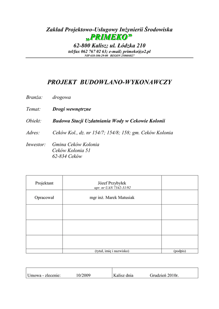 Zakład Projektowo-Usługowy Inżynierii Środowiska „PRIMEKO”