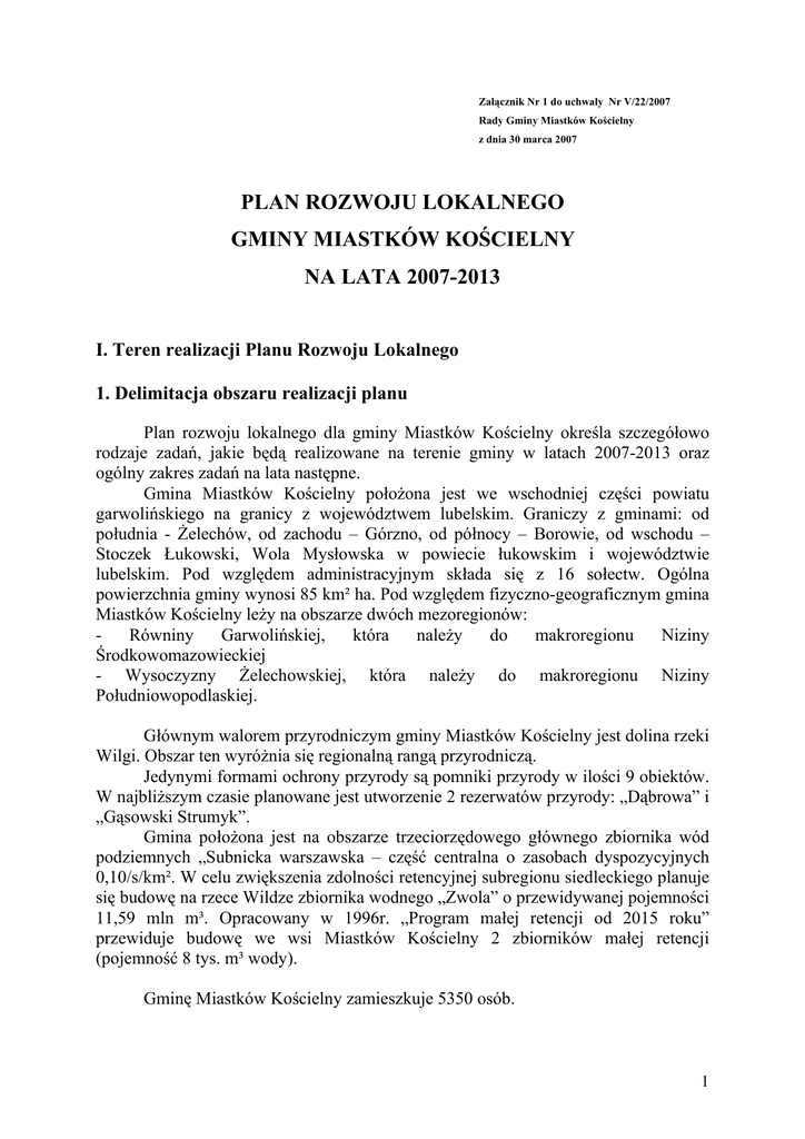 plan rozwoju lokalnego gminy miastków kościelny na lata 2007-2013