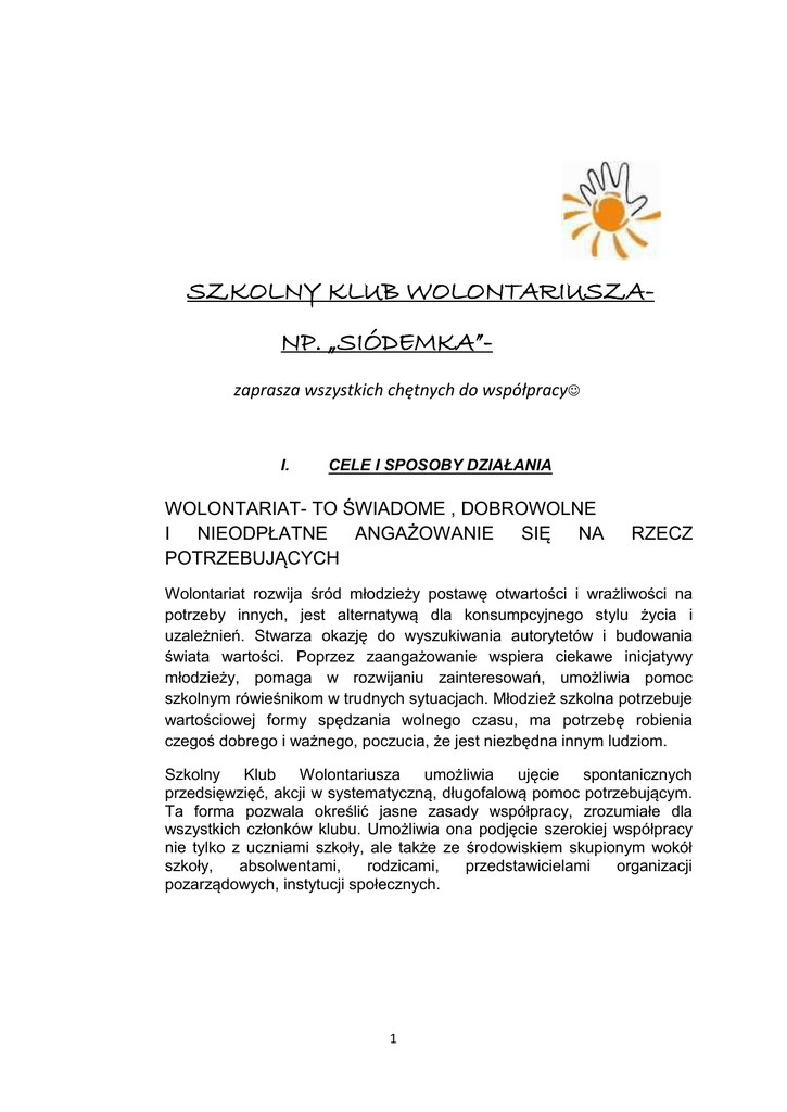 SZKOLNY KLUB WOLONTARIUSZA- NP. „SIÓDEMKA”-