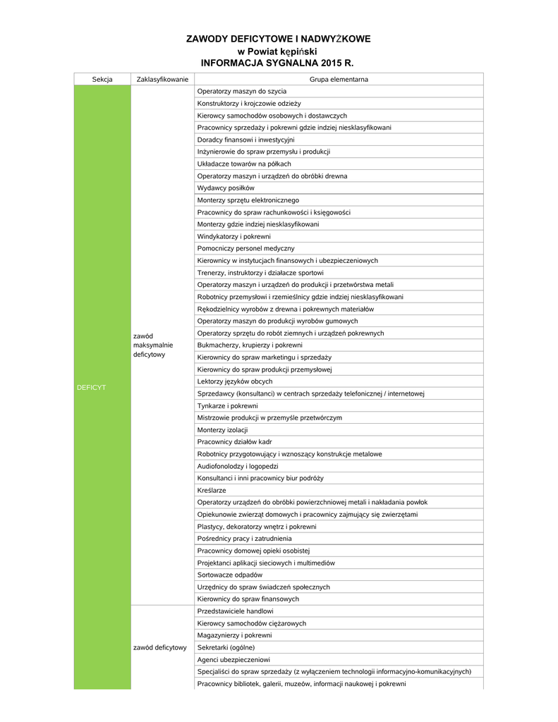 ZAWODY DEFICYTOWE I NADWYŻKOWE w Powiat kępiński