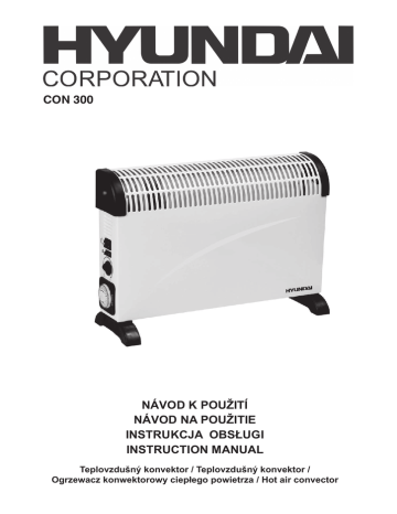 CON 300 NÁVOD K POUŽITÍ NÁVOD NA POUŽITIE INSTRUKCJA OBSŁUGI INSTRUCTION MANUAL Teplovzdušný konvektor / Teplovzdušný konvektor / Ogrzewacz konwektorowy ciepłego powietrza / Hot air convector Vážený zákazníku, děkujeme Vám za zakoupení našeho produktu. Před uvedením tohoto přístroje do provozu si velmi pozorně přečtěte návod k obsluze a tento návod spolu se záručním listem, pokladním dokladem a podle možností i s obalem a vnitřním obsahem obalu dobře uschovejte. Všeobecné bezpečnostní pokyny • Používejte tento přístroj výlučně pro soukromou potřebu a pro stanovené účely. Tento přístroj není určen pro komerční použití. • Chraňte ho před horkem, přímým slunečním zářením, vlhkostí (v žádném případě jej neponořujte do kapalin) a stykem s ostrými hranami. Nepoužívejte přístroj v případě, že máte vlhké ruce. Jestliže dojde k navlhčení nebo namočení přístroje, okamžitě vytáhněte zástrčku ze zásuvky. Vyvarujte se styku s vodou. • Přístroj vypněte a vždy vytáhněte zástrčku ze zásuvky (tahejte jen za zástrčku, nikdy ne za kabel), jestliže nebudete přístroj používat, chcete-li namontovat příslušenství, přístroj vyčistit nebo v případě poruchy. • Přístroj nesmí zůstat v provozu bez dozoru. Jestliže musíte pracoviště opustit, vždy přístroj vypněte, resp. vytáhněte zástrčku ze zásuvky (vždy tahejte za zástrčku, nikdy ne za kabel). • Abyste ochránili děti před riziky spojenými s elektrickými přístroji, postarejte se o to, aby kabel nevisel dolů a děti na přístroj nedosáhly. • Pravidelně kontrolujte přístroj a přívodní kabel z hlediska poškození. Jestliže přístroj vykazuje nějakou závadu, neuvádějte jej do provozu. • V případě selhání či nesprávné činnosti přístroj vypněte a nepokoušejte se ho sami opravit. Obraťte se na autorizovaný servis a žádejte originální náhradní díly. Nedodržení výše uvedeného může ovlivnit bezpečnost spotřebiče. • Respektujte, prosím, následující „Speciální bezpečnostní pokyny pro tento přístroj“. Speciální bezpečnostní pokyny pro tento přístroj • Pokud konvektor používáte v přenosné variantě, nepoužívejte ho, dokud správně nepřipevníte nožky. • Ujistěte se, že napájení elektrické zásuvky, ke které topení připojíte, odpovídá napájení uvedenému na typovém štítku zařízení a že je tato zásuvka uzemněná. • Napájecí kabel udržujte mimo dosah konvektoru. • Tento konvektor není určen pro použití v koupelnách, prádelnách a podobných uzavřených prostorách. Nikdy konvektor nestavte na místa, odkud by mohl spadnout do vany nebo jiné nádoby s vodou. • Nezakrývejte ani jinak neblokujte mřížky nebo otvory pro přisávání vzduchu konvektoru. • Konvektor nestavte na koberce s vysokým vlasem. • Vždy se přesvědčte, že jste konvektor postavili na pevný, rovný povrch. Ujistěte se, že konvektor nestojí blízko závěsů nebo nábytku, protože by hrozilo riziko vzniku požáru. • Nestavte konvektor před nebo bezprostředně pod elektrickou zásuvku. • Do mřížek nebo otvorů pro přisávání vzduchu konvektor nevkládejte žádné cizí předměty. • Konvektor nepoužívejte v prostorách, kde se vyskytují hořlavé tekutiny nebo výpary. • Tento spotřebič není určen pro používání osobami (včetně dětí), jimž fyzická, smyslová, nebo mentální neschopnost či nedostatek zkušeností a znalostí zabraňuje v bezpečném používání spotřebiče, pokud na ně nebude dohlíženo nebo pokud nebyly instruovány ohledně použití spotřebiče osobou zodpovědnou za jejich bezpečnost. • Na děti by se mělo dohlížet, aby se zajistilo, že si nebudou se spotřebičem hrát. • Při přenášení konvektor z místa na místo ho vždy odpojte. POZNÁMKA: Je normální, že po prvním zapnutí nebo po uvedení do provozu po delší nečinnosti může konvektor vydávat mírný zápach a kouř. Po chvíli provozu toto zmizí. CZ - CZ Popis ovládacích prvků P1. Úchyt pro přenos P2. Spínač ventilátoru P3. Spínače výkonu P4. Termostat P5. Časovač P6. Nožky Pokyny k použití Sestavení konvektoru (pro použití jako přenosné topení) Před použitím musíte ke konvektoru připevnit nožky (dodané v krabici). Ty musíte připevnit k základně topení pomocí 4 dodaných šroubů. Ovládání 1) Zvolte vhodné umístění konvektoru, s ohledem na výše uvedené bezpečnostní pokyny. 2) Zapojte zástrčku do vhodné elektrické zásuvky. 3) Otočte termostat ve směru hodinových ručiček. 4) Zapněte topné spirály pomocí spínačů výkonu na bočním panelu. Pokud chcete maximální výkon, zapněte oba spínače. Přepínání spínačů výkonů : oba vypnuté vypnuto jeden zapnutý 750 W druhý zapnutý 1250 W oba zapnuté 2000W CZ - 5) Jakmile dosáhnete požadované pokojové teploty, měli byste nastavení termostatu mírně snížit (otočením proti směru hodinových ručiček), až se ozve cvaknutí. Po tomto úkonu udrží konvektor aktuální pokojovou teplotu střídavým zapínáním a vypínáním topných spirál. 6) Pokud termostat necháte nastavený na minimu (otočení úplně proti směru hodinových ručiček), zvolíte protimrznoucí režim. V této poloze (záleží na velikosti místnosti) udrží konvektor okolní teplotu nad bodem mrazu. Provoz ventilátoru Ventilátor je ovládán pomocí spínače ventilátoru se symbolem větráku. Ventilátor bude fungovat pouze tehdy, pokud je zapnutý termostat a může být použit pokud jsou zapnuté topné spirály, aby do místnosti vháněl teplý vzduch. V případě vyšších teplot může být použit bez zapnutých topných spirál, aby do místnosti vháněl chladný vzduch. Provoz časovače Konvektor je navíc vybaven 24 hod. časovačem, který má 