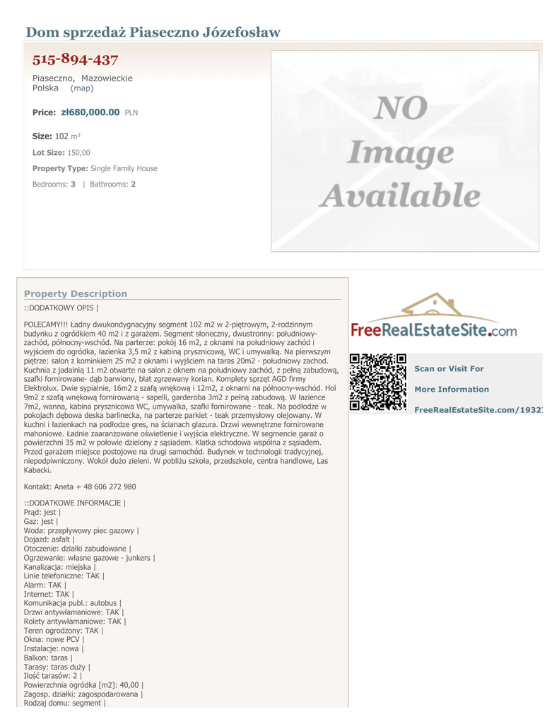 Piaseczno, - FreeRealEstateSite (Listing #: 193270)