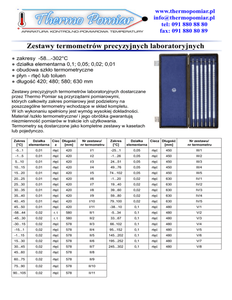 Zestawy termometrów precyzyjnych laboratoryjnych