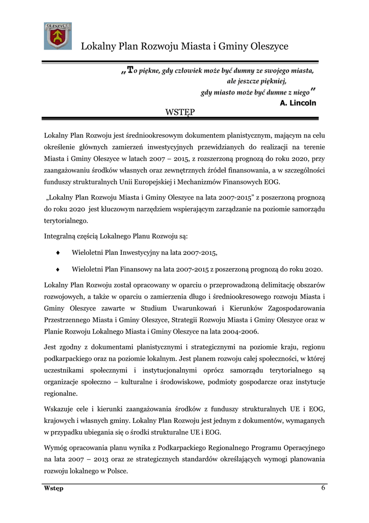 Lokalny Plan Rozwoju Miasta i Gminy Oleszyce