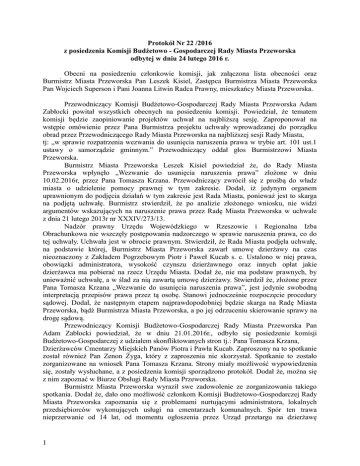 1 Protokół Nr 22 /2016 z posiedzenia Komisji Budżetowo