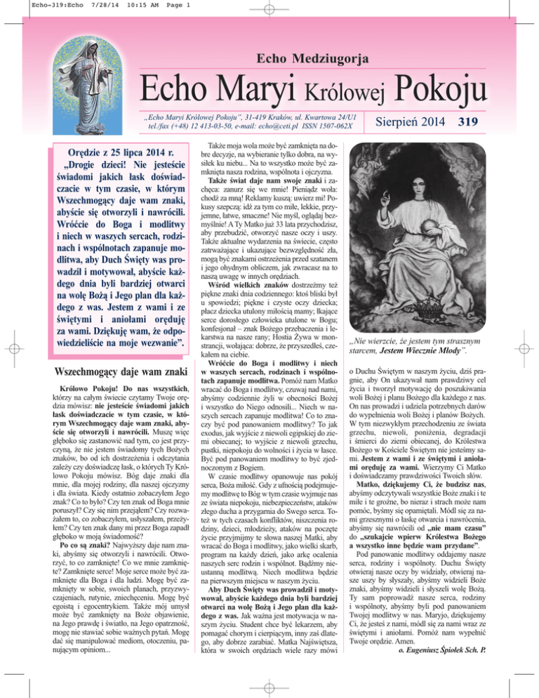 2014 sierpień - Echo Maryi Królowej Pokoju
