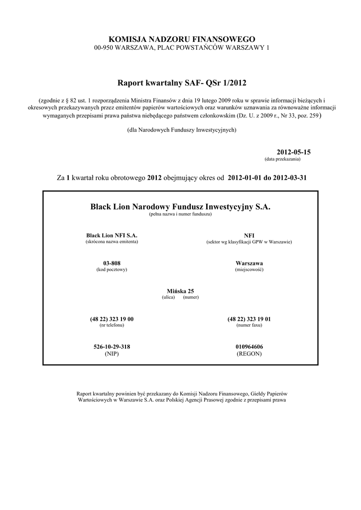 Raport kwartalny SAF- QSr 1/2012