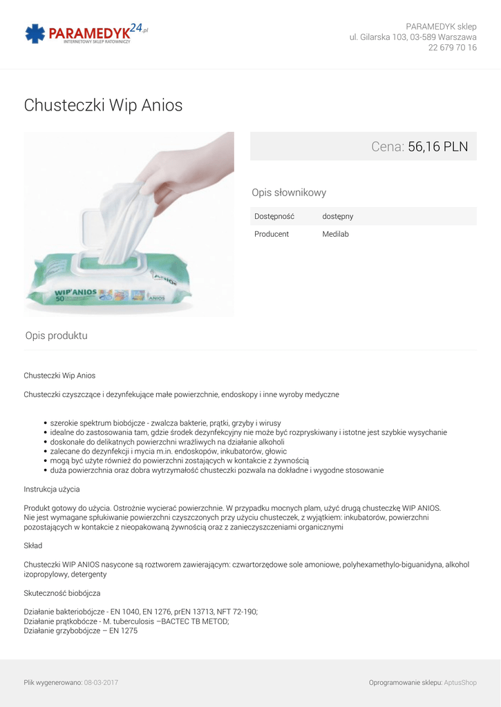 Chusteczki Wip Anios - Internetowy Sklep Ratowniczy Paramedyk24.pl