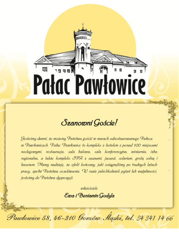 menu pałacu pawłowice