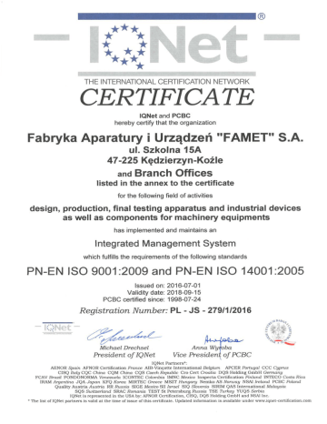 TuVNORD CERTYFIKAT TOV NORO Systems GmbH & Co. KG zaświadcza , że przedsiębiorstwo FABRYKA APARATURY l URZĄDZEŃ "FAMET" S.A. PL-47 -225 Kędzierzyn Koźle, ul. Szkolna 15a zostało skontrolowane i uznane jako zakład prace spawalnicze w zakresie nośnych prowadzący konstrukcji stalowych na podstawie normy DIN EN ISO 3834-2 Nr certyfikatu: 07-204-1326 HS 2147/15 Zakres uznania i szczegóły kontroli określono na drugiej stronie certyfikatu oraz w sprawozdaniu nr: 1326ST09450 l 8112520223 Firma pos iada system zapewnienia jakości, wykwalifikowany personel oraz technologie spawania zapewniające właściwą produkcję i kontrolę wyrobów spawanych. wyposaże nie zakładowe , Certyfikat jest ważny do 05/2018 Hamburg, 12.05.2015 yroby Budowlane ~ DAkl<S TOV NORO Systems GmbH & Co. KG • Technikzentrum • Zertifizierungsstelle fOr Bauprodukte GroBe BahnstraBe 31 • 22525 Hamburg Telefon (040) 8557-2368 ·Fax (040) 8557-2710 ·E-mail: technikzentrum@tuev-nord .de STW-P0Z-BauPVO-Z-FB-320_29_PL_3834_zertifikat-rev0(2014-08) Zakres czynności Obowiązuje tylko w spawalniczych połączeniu i jako załącznik do certyfikatu DIN EN ISO 3834 Zakład Producent: Nr 1 , 4 7-225 Kędz ierzyn-Koźle Nr 2, 28-300 Jędrzejów Zakład Nr 3, 63-600 Kępno Zakład Nr 4 , 45-641 Opole Zakład Nr 5, 23-235 Annopo l 07-204-1326 HS 2147/15 12.05.2015 2 Ul. Szkolna 15a Ul. Przemysłowa 11 Ul. Przemysłowa 12 Ul. Oświęcimska 102 C Ul. Stan i sława Skały 15 Zakład Nr certyfikatu : Data wydania : część 1 Wyrób( oby) Producenta Nośne elementy i podzespoły dla konstrukcji stalowych do EXC3 wg EN 1090-2 2 Norma(y) wyrobu i inne normy (patrz DIN EN ISO 3834-5) DIN EN 1090-2, DIN EN ISO 9606-1 DIN EN ISO 5817 , DIN EN ISO 15614-1 3 Grupa(y) materiałowa (wg CEN ISOITR 15608) 1.1 1.2, 8.1 l . 4 p rocesy spawa lmcze 1procesy zw1ązane Procesy spawalnicze (wg ISO 4063) z określeniem stopnia mechanizacji 135 MAG spawanie elektrodą topliwą w osłon ie gazów aktywnych , częściowo zmechanizowane 111 Spawanie łukowe elektrodą otuloną , manualne Grupy materi ałowe (wg CEN ISOITR 15608) 121 Spawanie łuk i em krytym drutem elektrodowym , zmechanizowane 136, Spawanie łukowe drutem elektrodowym proszkowym w atmosferze gazu aktywnego, częściowo zmechanizowane 141 , spawanie łukowe elektrodą nietopliwą w osłonie gazów obojętnych (TIG) , manualne 1.1, 1.2, ( R eH ~ 360 N/mm\ 8.1 1.1, 1.2 ( R eH ~ 1.1, 1.2 ( R eH 1.1, 1.2 ( R eH 1.1, 1.2 R eH 2 360 N/mm ), ~ 360 N/mm\ 8.1 ~ 360 N/mm\ ~ 360 N/mm 2 , 8.1 . . dz1a . lny persone spawa lmczy 5 Od1pow1e Zakres zadań i stop ie ń * Kwalifikacje Osoba odpowiedzialna za nadzór spawalniczy, C IWE Zastępca , C Bronisław Wąsik EWE Zastępca , C Adam Wieloch IWE Zastępca , C Artur Smorąg IWE Zastępca , C Wojciech Suchy IWE Zastępca , C Dariusz Masłań IWE Arkadiusz Pęcak Zastępca , C IWE .. * Stop1en kwalifikaCJI mus1 byczgodny z ISO 14731 lub B, S, lub C Nazwisko Andrzej Chudzio TOV NORO Systems GmbH & Co. KG • Technikzentrum • Zertifizierungsstelle fOr Bauprodukte GroBe BahnstraBe 31 • 22525 Hamburg Telefon (040) 8557-2368 ·Fax (040) 8557-2710 ·E-mail: [email protected] STW-P0Z-BauPVO-Z-FB-320_29_PL_3834_zertifikat-reV0(201 4-08) TuYNORD CERTIFICATE TUV NORO Systems GmbH & Co. KG certifies that the company FABRYKA APARATURY l URZĄDZEŃ "FAMET" S.A. PL-47 -225 Kędzierzyn Koźle, ul. Szkolna 15a has been verified and recognized as welding warkshop in the produet range of Steel structures based on the requirements of the standard DIN EN ISO 3834-2 Certificate-Nr.: 07-204-1326 HS 2147/15 The range of va lidity and details of the inspection can be seen on the back page and in our Report-no. : 1326ST09450 l 8112520223 The company is using a quality assurance system. tech nica l equipment, qualified personnel and procedures for joining processes for manufacturing and testing of welded products. This certiticałe is valid until 05/2018 Hamburg, 12.05.2015 ~ DAkkS ................unDI~ .. f>.ZE · U07.~l-CIO .... o .,; o TOV NORO Systems GmbH & Co. KG • Technikzentrum • Certification Body for Construction products GroBe BahnstraBe 31 • 22525 Hamburg Telefon (040) 8557-2368 ·Fax (040) 8557-2710 ·E-mail: [email protected] S1W-P0Z-BauPVO-Z-FB-320_29_EN_3834_zertifikat-rev0(2014-08) Scope of the welding activities Only valid in relation andasan attachment to the Manufacturer: Cert.-no. : Date of issue: certiticałe DIN EN ISO 3834 Part 2 Factory No.1 , 47-225 Kędzierzyn-Koźle Factory No.2, 28-300 Jędrzejów Factory No.3, 63-600 Kępno Factory No.4, 45-641 Opole Factory No.5, 23-235 Annopol 07-204-1326 HS 2147/15 12.05.2015 Ul. Szkolna 15a Ul. Przemysłowa 11 Ul. Przemysłowa 12 Ul. Oświęcimska 102 C Ul. Stanisława Skały 15 1 Product(s) of the manufacturer Structural components and for steel structures until EXC3 according to EN 1090-2 2 Produet standards and other standards (see DIN EN ISO 3834-5) DIN EN 1090-2, DIN EN ISO 9606-1 DIN EN ISO 5817 , DIN EN ISO 15614 3 Material group(s) (acc. to CEN ISO!TR 15608) 1.1 1.2, 8.1 l 4 Welding processes and related material groups Welding processes (acc. to ISO 4063) with grade of mechanization 135 GMAW, partly-mechanized Material groups (acc. to CEN ISO!TR 15608) 111 metal arc welding (MMA) , manual 1.1, 1.2 (ReH S 360 N/mm\ 8.1 121 SAW one-wire submerged arc welding , mechanized 1.1, 1.2, (ReH S 360 N/mm\ 8.1 141 tungsten inert gas welding (WIG), manual 1.1, 1.2 (ReH S 360 N/mm\ 136 MAG welding with flux cored electrode, partly-mechan ized 1.1, 1.2 (ReH S 360 N/mm 2), 8.1 1.1, 1.2 (ReH S 360 N/mm\ 5 Responsible welding coordinators Nam e Andrzej Chudzio Qualification SFI (IWE) Bronisław Wąsik Scope of competence and level* Responsible welding coord inator level C Deputy, C Deputy, C Deputy, C Deputy, C Deputy, C Deputy, C EWE IWE Adam Wieloch Artur Smorąg IWE Wojciech Suchy IWE Dariusz Masłoń IWE Arkadiusz Pęcak IWE * The level of knowledge complies with ISO 14731 B, S or C TOV NORO Sy