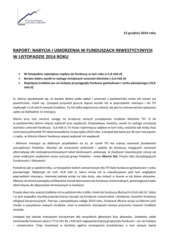 raport: nabycia i umorzenia w funduszach inwestycyjnych w
