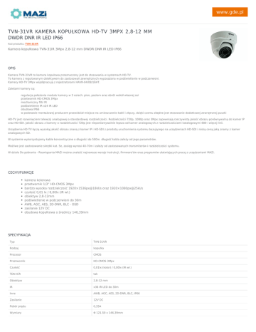 www.gde.pl TVN-31VR KAMERA KOPUŁKOWA HD