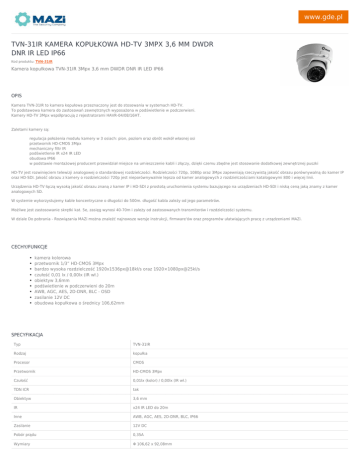 www.gde.pl TVN-31IR KAMERA KOPUŁKOWA HD