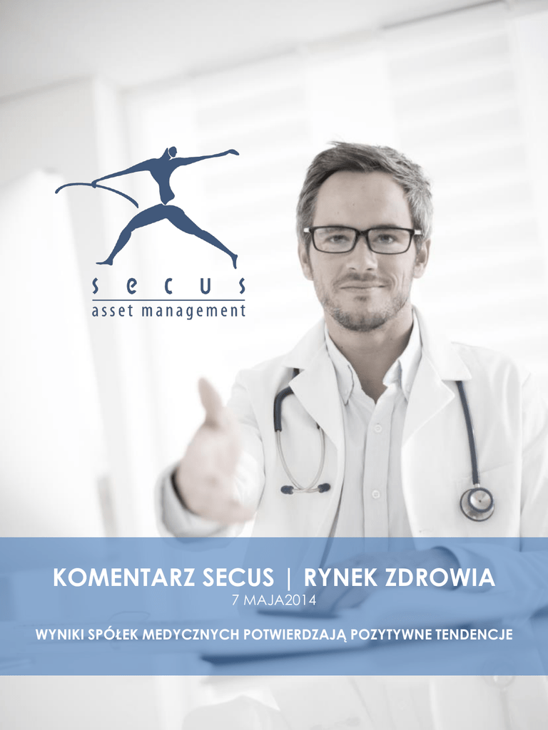 KOMENTARZ SECUS | RYNEK ZDROWIA 7 MAJA2014 WYNIKI SPÓŁEK MEDYCZNYCH POTWIERDZAJĄ POZYTYWNE TENDENCJE I NVESTMENT I NSTINCT WYNIKI SPÓŁEK MEDYCZNYCH POTWIERDZAJĄ POZYTYWNE TENDENCJE Jak wynika z najnowszego raportu firmy badawczej PMR w latach 2014-2018 należy oczekiwać dalszego stabilnego wzrostu rynku prywatnej opieki zdrowotnej w Polsce. Zgodnie z szacunkami PMR wartość całego rynku przekroczy 40 mld złotych już w 2016 roku. W 2013 roku dynamika wzrostu rynku prywatnej opieki zdrowotnej wyniosła 4,6%. Tym samym oznaczało to ożywienie względem roku poprzedniego, kiedy to prywatny sektor medyczny rozwijał się w tempie 4,4%. W kolejnych latach tempo rozwoju tego rynku ma dodatkowo wzrastać, aby w latach 2014-2018 osiągnąć średnio rocznie 5,7 proc. Sprzyjać temu ma stopniowa poprawa ogólnej sytuacji ekonomicznej w kraju, a także systematyczny wzrost wielkości oraz udziału wydatków prywatnych w całkowitych wydatkach na opiekę zdrowotną w Polsce. Systematyczny wzrost rynku prywatnej opieki zdrowotnej w Polsce można zaobserwować analizując wyniki finansowe spółek publicznych z branży medycznej notowanych na rynku głównym GPW bądź w alternatywnym systemie obrotu – NewConnect. Przychody ze sprzedaży Spółka Grupa Kapitałowa Scanmed Multimedis Grupa Kapitałowa POLMED Centrum Medyczne ENEL-MED Spółka Akcyjna Grupa Kapitałowa PCZ* 2013 rok 2012 rok 90 294 000,00 zł 65 556 000,00 zł Zmiana [%] 37,7% 54 664 000,00 zł 45 493 000,00 zł 20,2% 199 760 000,00 zł 180 785 000,00 zł 10,5% 73 287 283,00 zł 66 782 000,00 zł 9,7% 172 556 000,00 zł 157 517 000,00 zł 9,5% Grupa Kapitałowa Dom Lekarski* 27 600 747,00 zł 27 090 978,00 zł 1,9% Grupa Kapitałowa Swissmed** 33 072 000,00 zł 41 203 000,00 zł -19,7% Grupa Kapitałowa EMC Instytut Medyczny *dane finansowe za kolejne 12 miesięcy 2013 roku (z sprawozdania za IV kwartał 2013 roku. ** dane finansowe za okres kolejnych 9 miesięcy 2012 i 2013 roku (od 01.04-31.12) - przesunięty rok obrotowy. Przychody ze sprzedaży wybrane spółki publiczne z sektora prywatnej opieki medycznej 200 000 000,00 zł 180 000 000,00 zł 160 000 000,00 zł 140 000 000,00 zł 120 000 000,00 zł 100 000 000,00 zł 80 000 000,00 zł 60 000 000,00 zł 40 000 000,00 zł 20 000 000,00 zł 0,00 zł Grupa Kapitałowa Scanmed Multimedis Grupa Kapitałowa POLMED Centrum Grupa Grupa Grupa Grupa Medyczne Kapitałowa Kapitałowa Kapitałowa Kapitałowa ENEL-MED PCZ* EMC Instytut Dom Swissmed** Spółka Medyczny Lekarski* Akcyjna 2013 rok 90 294 000,00 54 664 000,00 199 760 000,00 73 287 283,00 172 556 000,00 27 600 747,00 33 072 000,00 2012 rok 65 556 000,00 45 493 000,00 180 785 000,00 66 782 000,00 157 517 000,00 27 090 978,00 41 203 000,00 Źródło: Opracowanie własne na podstawie sprawozdań finansowych spółek za lata 2012-2013 I NVESTMENT I NSTINCT Aż sześć spośród siedmiu zaprezentowanych powyżej podmiotów realizujących usługi w ramach prywatnej opieki medycznej zanotowało w 2013 roku wzrost przychodów w stosunku do poprzedniego roku. W niektórych przypadkach wzrosty przychodów ze sprzedaży były bardzo znaczące, a jedynie w jednym przypadku spadły. Warto jednak zauważyć, że na skutek przesunięcia roku obrotowego Grupy Kapitałowej Swissmed, zaprezentowane dane finansowe za ostatnich 9 miesięcy roku 2012 i 2013 mogą nie być do końca porównywalne z wynikami pozostałych podmiotów, w których rok obrotowy pokrywa się również z rokiem kalendarzowym. Wzrost przychodów ze sprzedaży w 2013 roku nie jest jednak zjawiskiem jednorazowym, a wręcz przeciwnie – jest elementem procesu systematycznego wzrostu przychodów podmiotów działających w branży prywatnej opieki medycznej. W ciągu ostatnich trzech lat obroty poszczególnych podmiotów wzrosły od kilkudziesięciu do nawet kilkuset procent. Co szczególnie ważne, wzrosty te nie były konsekwencją pojedynczych odchyleń a jedynie tendencji, w której przychody w dniu zamykania ksiąg rachunkowych były zawsze wyższe niż w analogicznym okresie roku poprzedniego. Przychody ze sprzedaży w latach 2010-2013 wybrane spółki publiczne z sektora prywatnej opieki medycznej 172 556 Grupa Kapitałowa EMC Instytut Medyczny 125 577 199 760 Centrum Medyczne ENEL-MED Spółka Akcyjna 137 800 73 287 Grupa Kapitałowa PCZ 47 289 54 664 Grupa Kapitałowa POLMED 24 178 27 601 Grupa Kapitałowa Dom Lekarski 9 267 90 294 Grupa Kapitałowa Scanmed Multimedis 17 039 0 50 000 100 000 150 000 200 000 Tysiące złotych 2013 rok 2010 rok Źródło: Opracowanie własne na podstawie sprawozdań finansowych spółek za lata 2010-2013 I NVESTMENT INSTINCT I NVESTMENT I NSTINCT Wynik finansowy netto Spółki 2013 rok 2012 rok Grupa Kapitałowa Scanmed Multimedis 3 559 000,00 zł -259 000,00 zł Grupa Kapitałowa POLMED 2 895 000,00 zł -3 373 000,00 zł 467 000,00 zł -8 831 000,00 zł 32 952 925,44 zł 7 910 000,00 zł Grupa Kapitałowa EMC Instytut Medyczny 171 000,00 zł 515 000,00 zł Grupa Kapitałowa Dom Lekarski* 559 808,56 zł 522 723,55 zł 4 057 000,00 zł -11 568 000,00 zł Centrum Medyczne ENEL-MED Spółka Akcyjna Grupa Kapitałowa PCZ* Grupa Kapitałowa Swissmed** *dane finansowe za kolejne 12 mcy 2013 roku (z sprawozdania za IV kwartał 2013 roku). ** dane finansowe za okres kolejnych 9 mcy 2012 i 2013 roku (od 01.04-31.12) - przesunięty rok obrotowy. Rok 2013 dla spółek z sektora prywatnej opieki zdrowotnej to nie tylko wzrost przychodów ze sprzedaży, ale również poprawa wyników finansowych w stosunku do roku ubiegłego. Wszystkie spośród zaprezentowanych powyżej podmiotów zakończyły 2013 rok z dodatnim wynikiem finansowym (w przypadku GK Swissmed dane finansowe obejmują ostatnie 9 miesięcy 2012 i 2013 roku). Co warte odnotowania w większości przypadków wzrost wyniku netto był bardzo znaczący i zauważalny w stosunku do końca 2012 roku. Jak widać z powyższej analizy perspektywy rozwoju runku prywatnej opieki zdrowotnej na