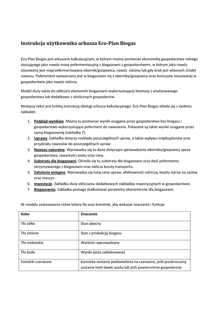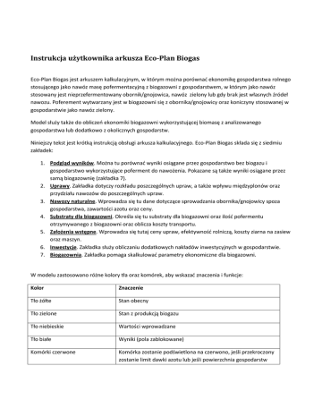 Instrukcja użytkownika arkusza Eco-Plan Biogas